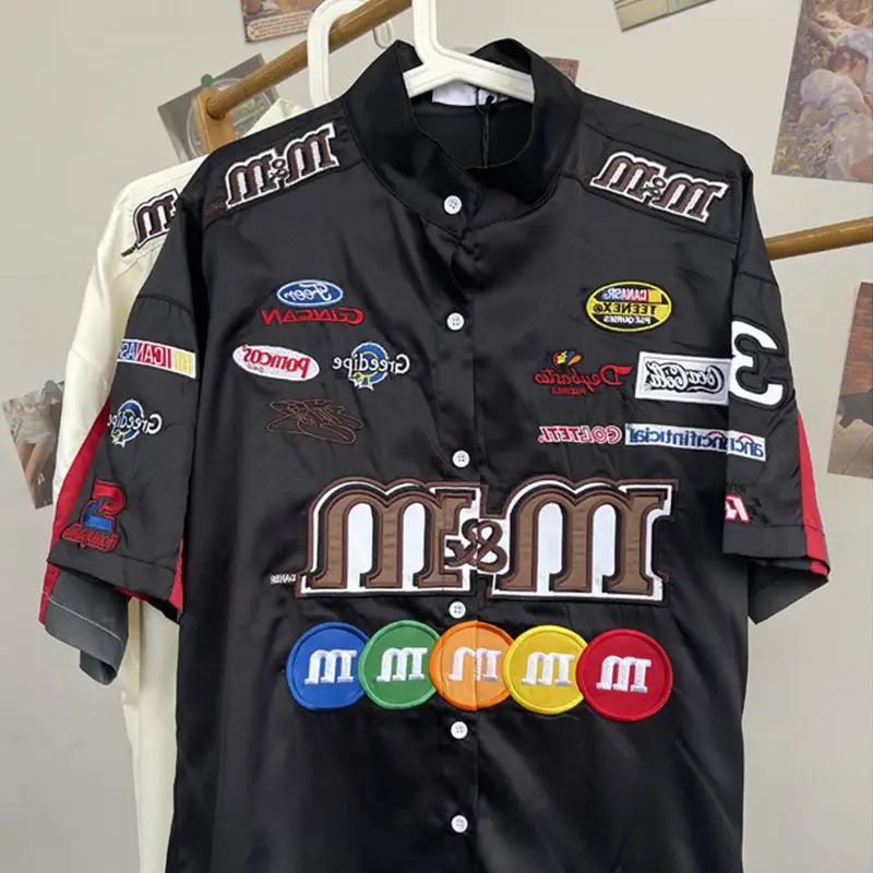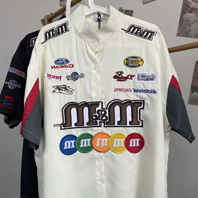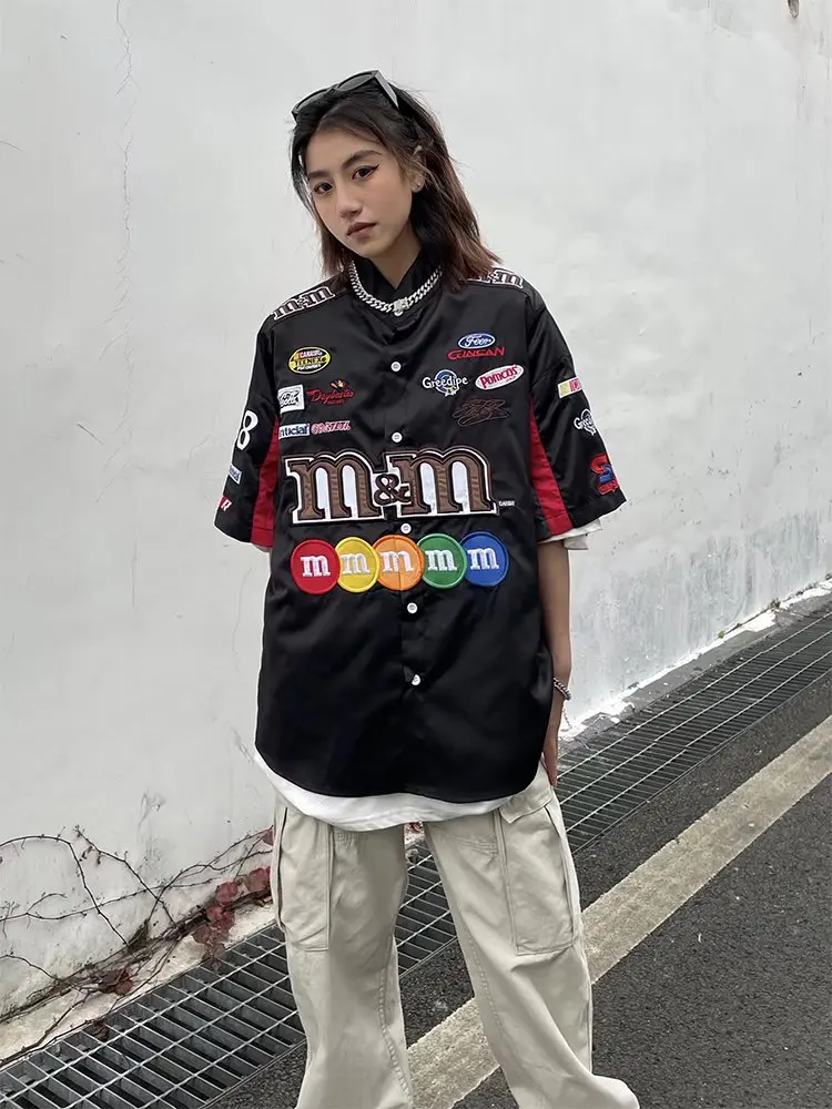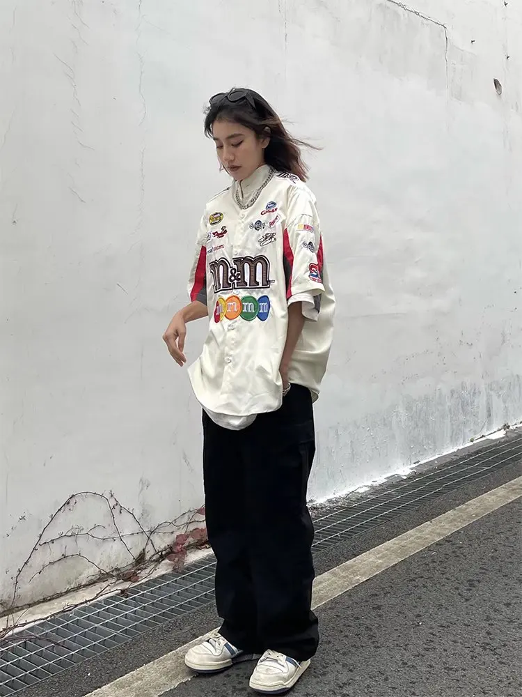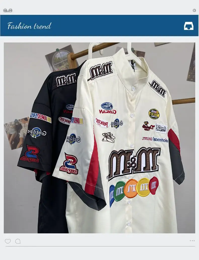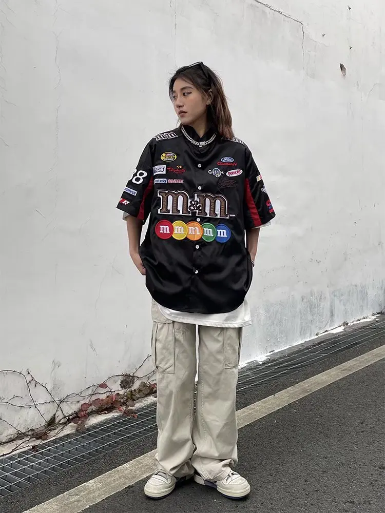American Retro Embroidery Baseball Shirt Harajuku Hip Hop Short Sleeve Shirts Casual Fashion Uniform Shirt Vintage Streetwear