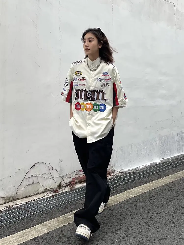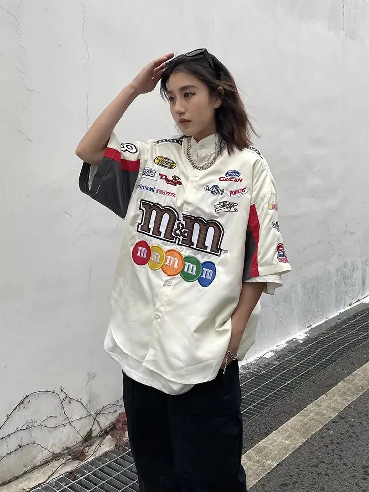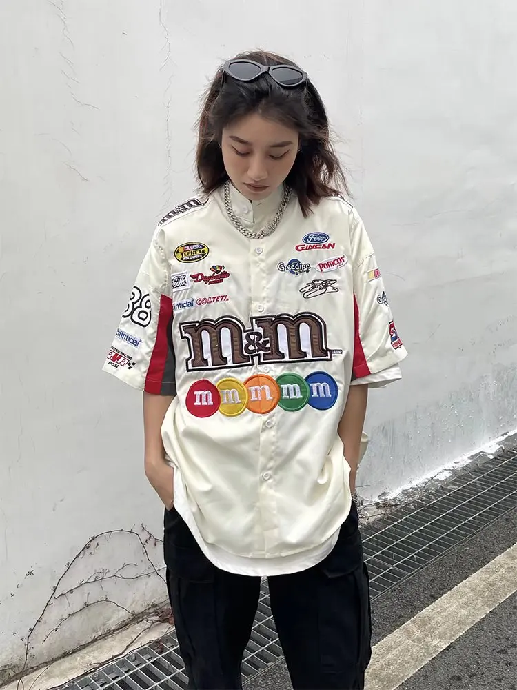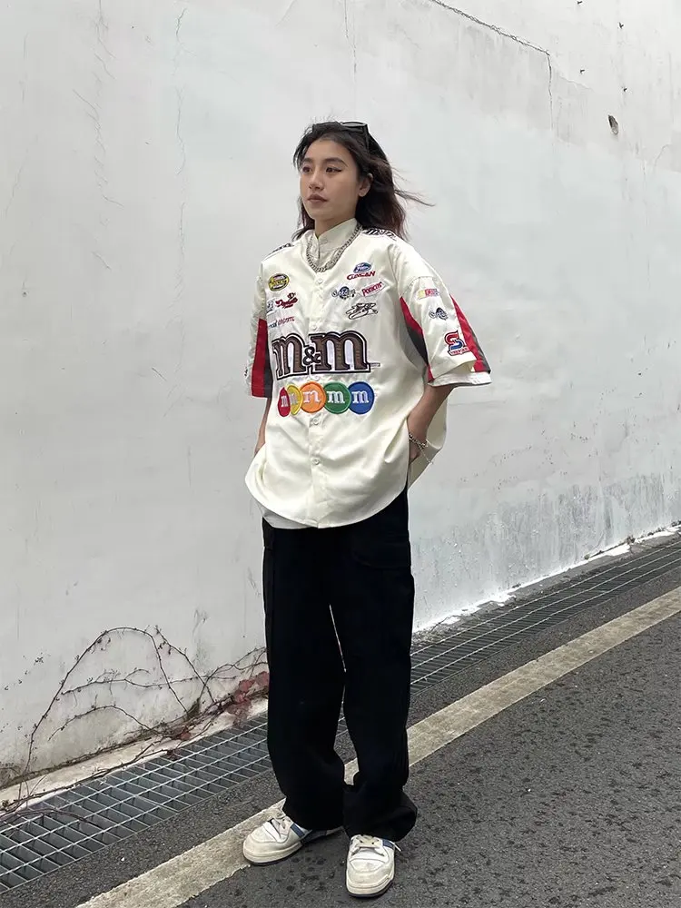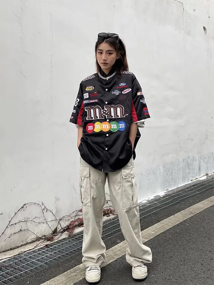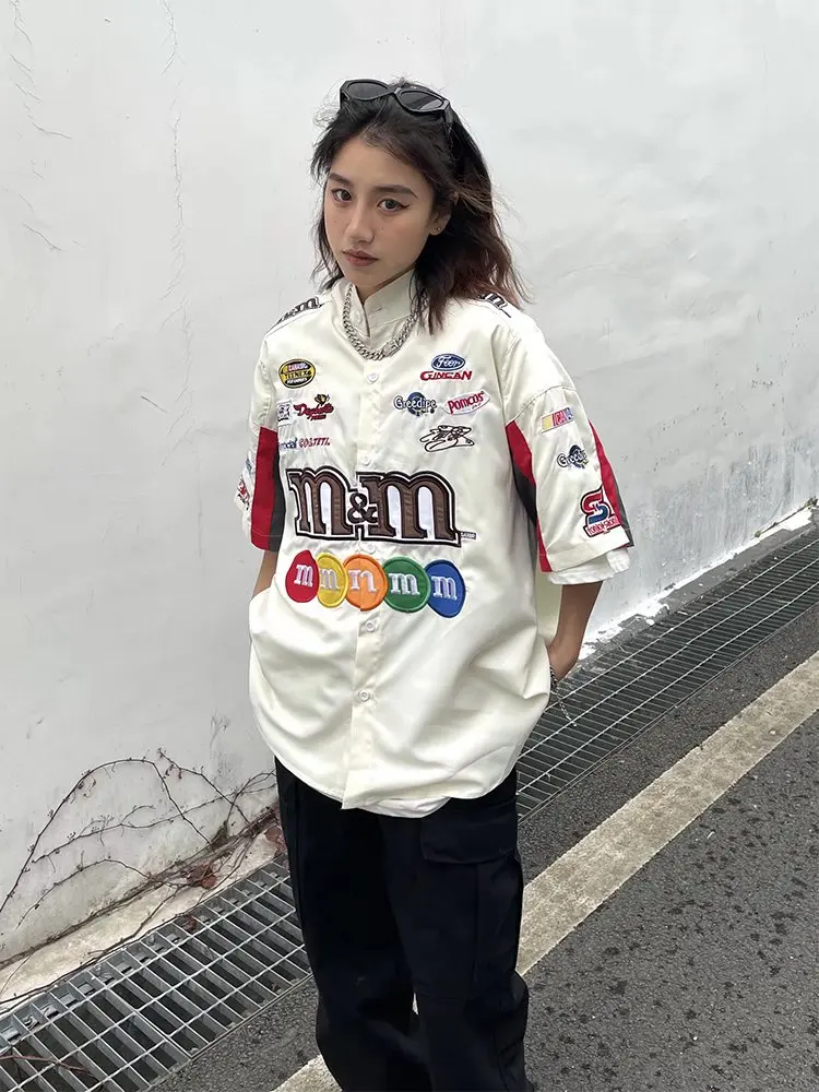 American Retro Embroidery Baseball Shirt Harajuku Hip Hop Short Sleeve Shirts Casual Fashion Uniform Shirt Vintage Streetwear