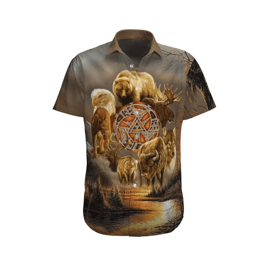 Animal And Native America Watercolor Design Hawaiian Shirt, Hawaiian For Gift
