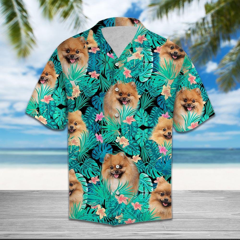 Appealing Love Of Pomeranian Tropical Jungle Design Hawaiian Shirt, Hawaiian Shirt Gift, Christmas Gift