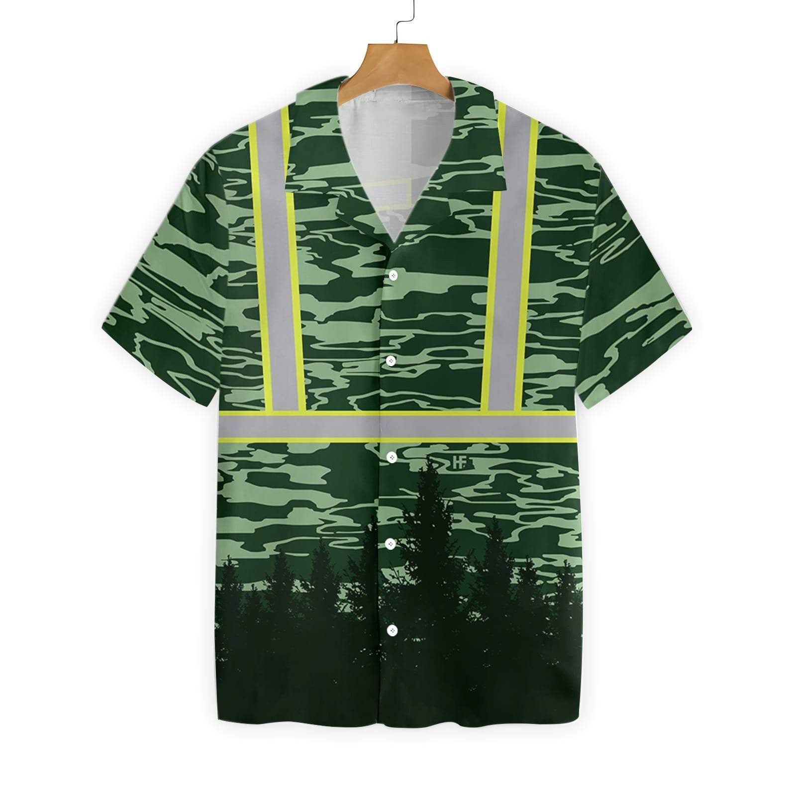 Arborist Safety Green Pattern With Grey Line Hawaiian Shirt, Hawaiian Shirt Gift, Christmas Gift