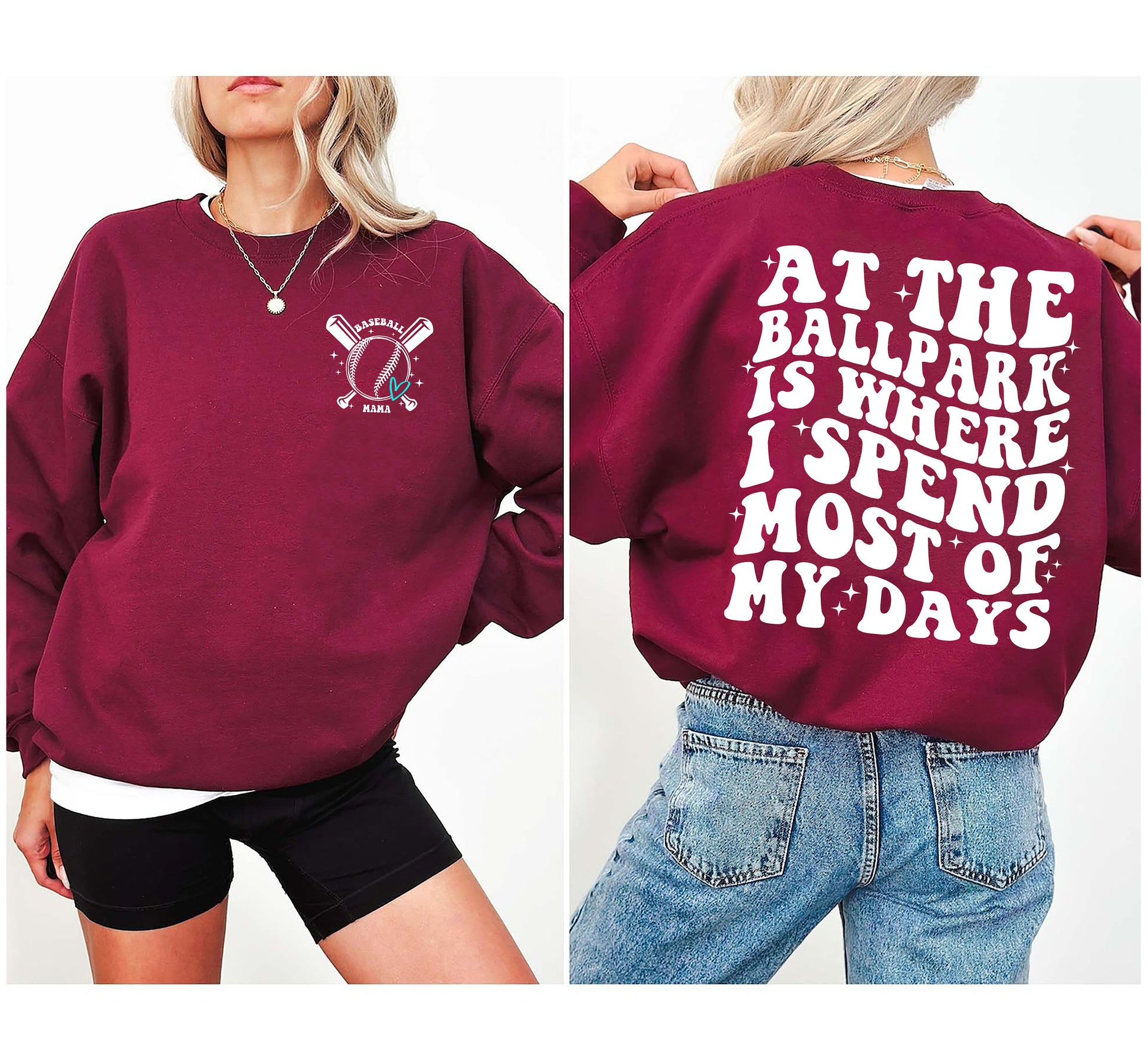 At The Ballpark Is Where I Spend Most Of My Days Hoodie, Baseball Mom Shirt, Boys Baseball, Trendy Baseball, Baseball Sweatshirt, Mom Shirt