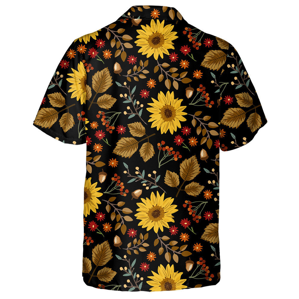 Autumn Sunflowers With Black Background Pattern Hawaiian Shirt, Hawaiian For Gift