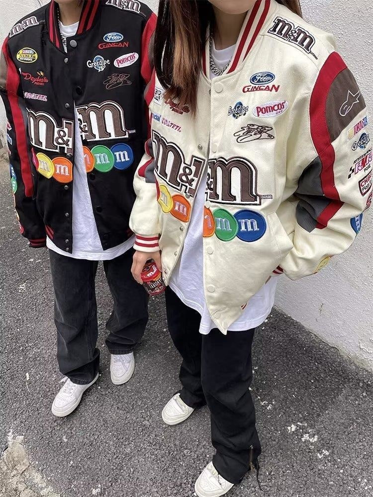 Autumn Winter Women's Embroidery Thin Baseball Racing Jacket Men Female Coat Outerwear Plus Size Long Sleeve Clothing