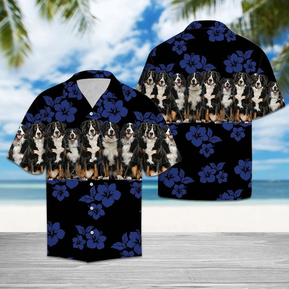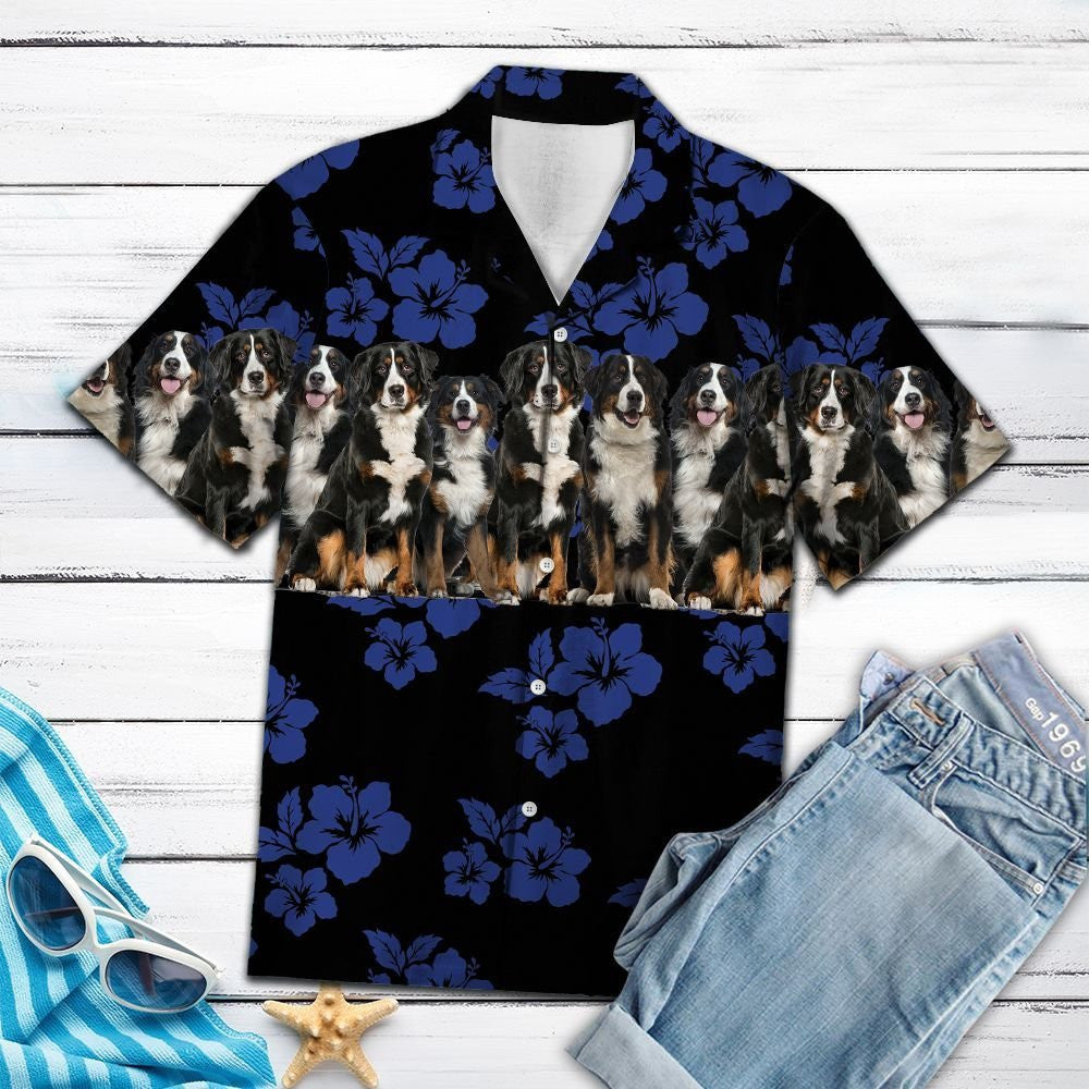 Awesome Bernese Mountain Dog Group On Hibiscus Pattern Hawaiian Shirt, Hawaiian Shirt Gift, Christmas Gift