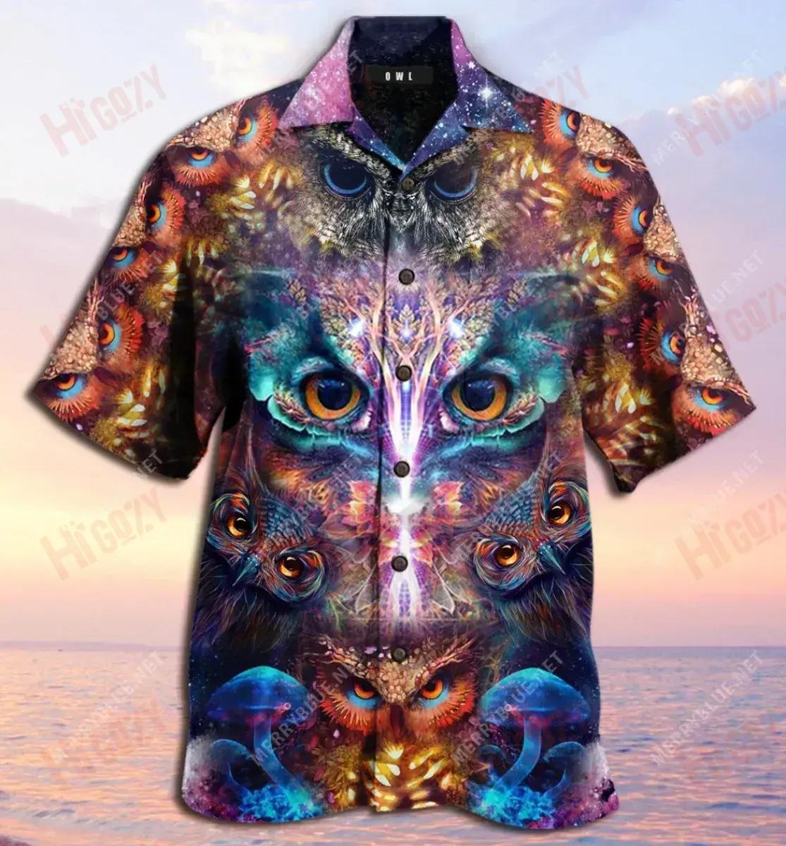 Awesome Owl Unisex Short Sleeve Shirt Vacation Hawaiian T Shirts Tactical Hawaiian Shirt Funny Hawaiian Shirts, Hawaiian Shirt Gift, Christmas Gift