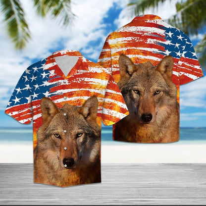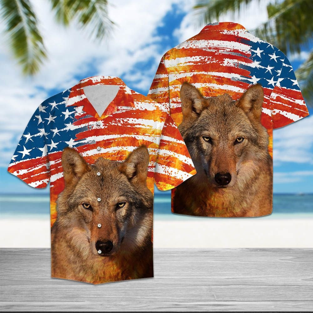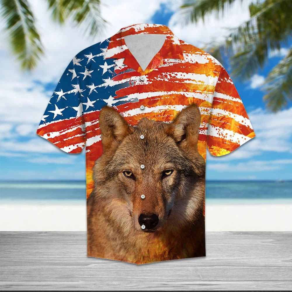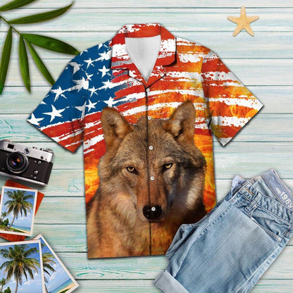 Awesome Wild Wolf Portrait On Usa Flag Pattern Hawaiian Shirt, Hawaiian Shirt Gift, Christmas Gift