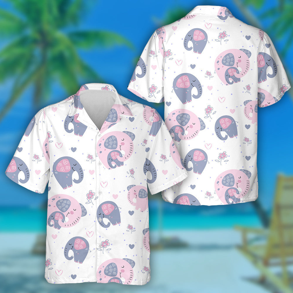 Baby And Mother Elephant Happy Together Hawaiian Shirt, Hawaiian For Gift