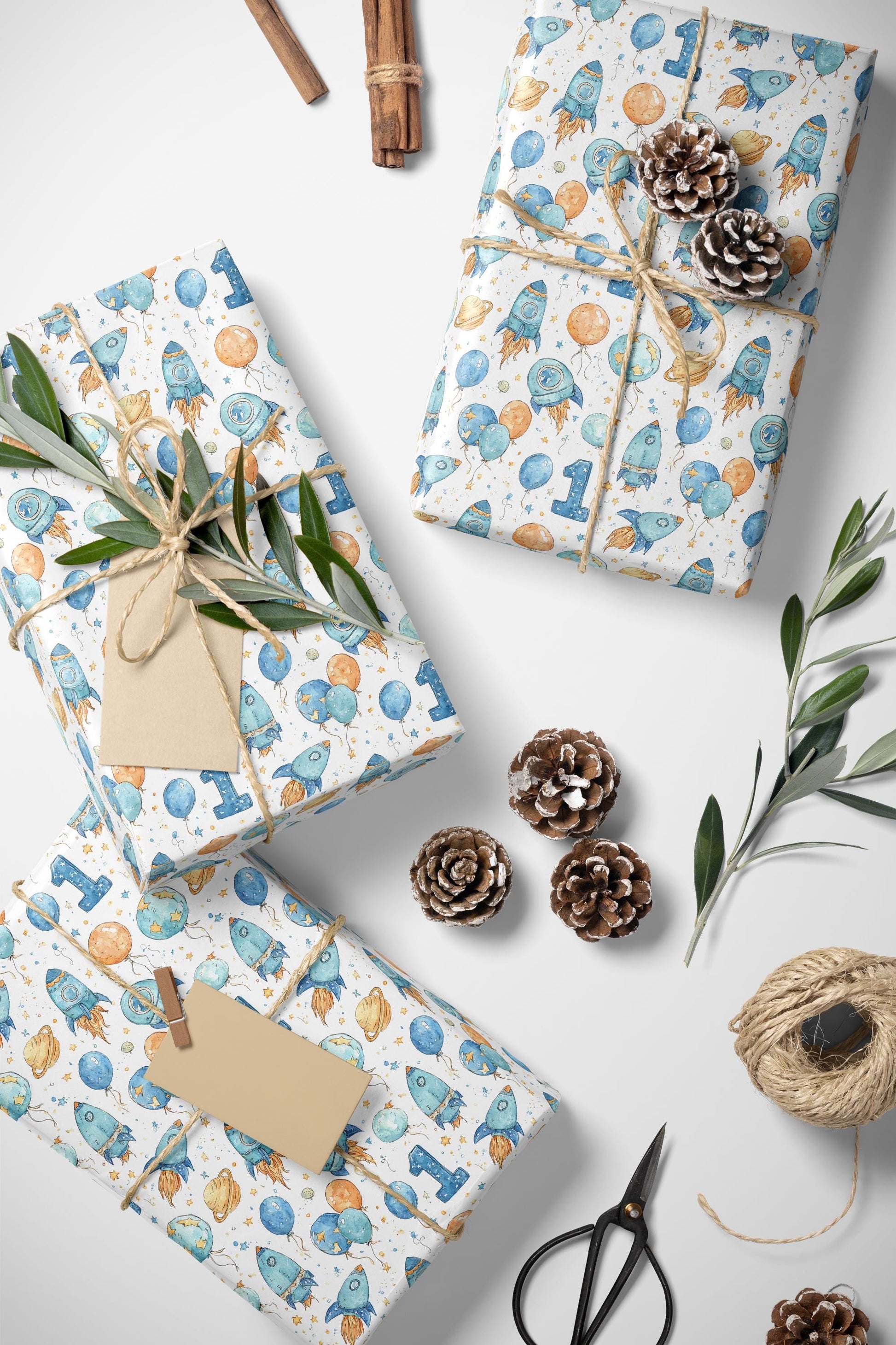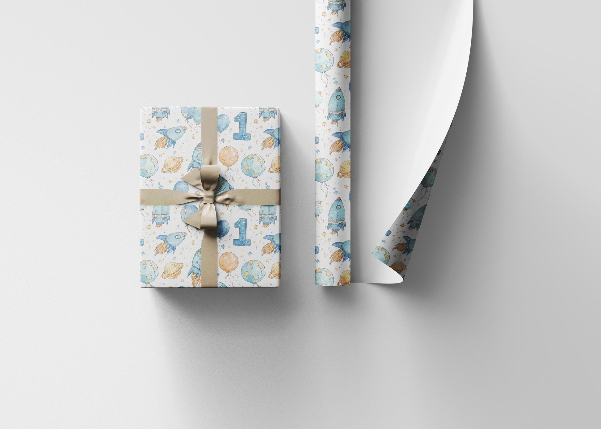 Baby Boy First Birthday Space Wrapping Paper Roll, Astronaut Rocket Gift Wrap for Toddler 1st Birthday Party and Galaxy Theme #1