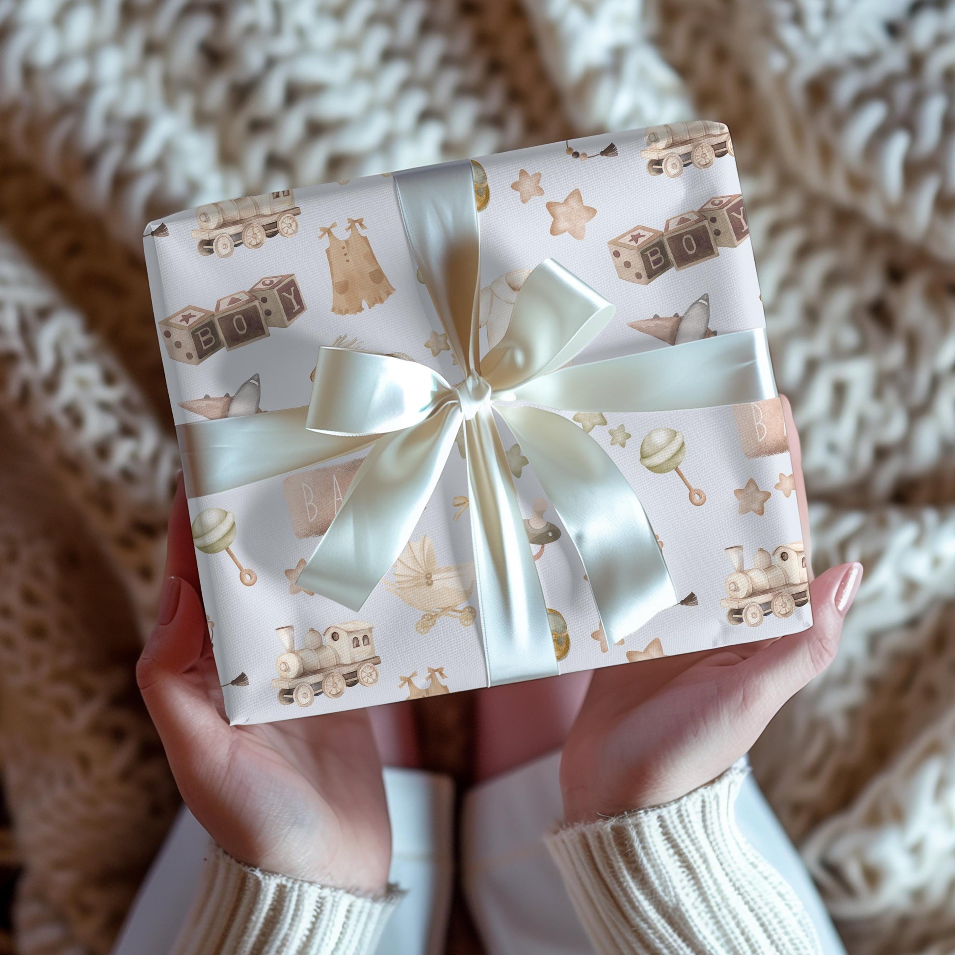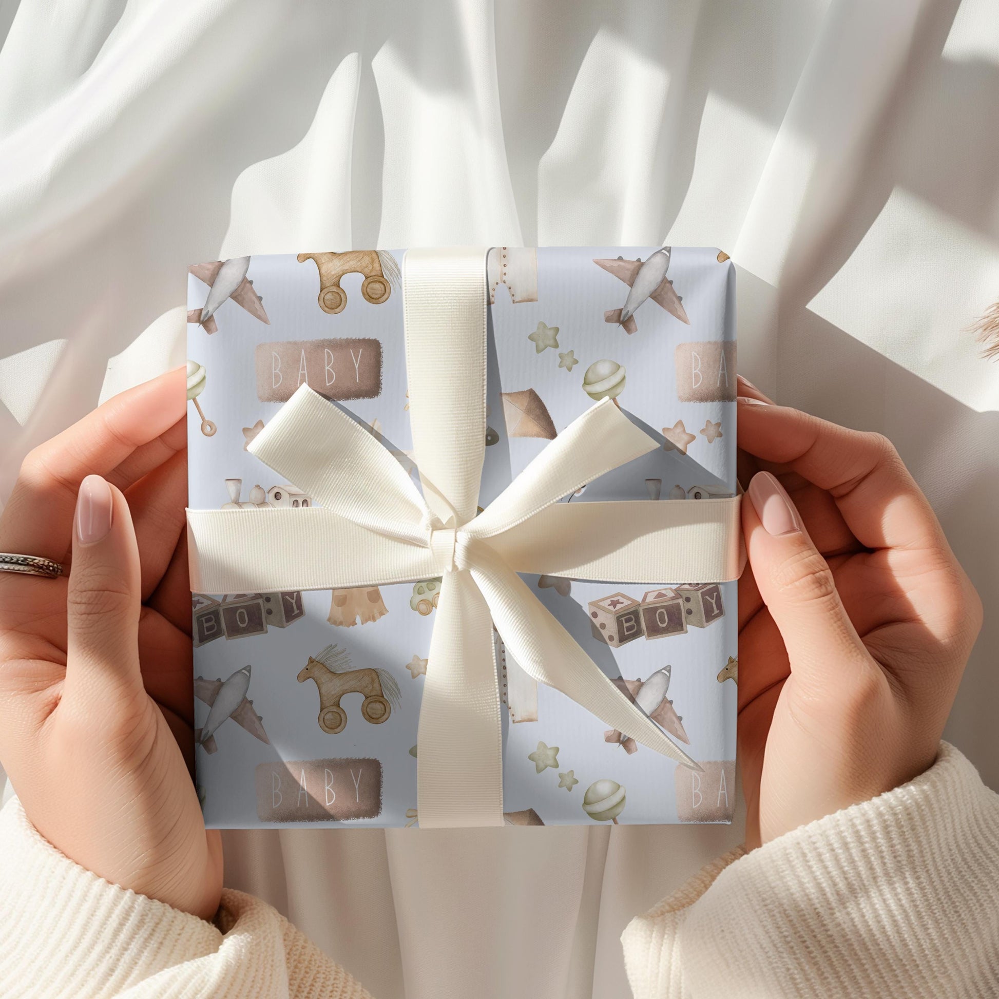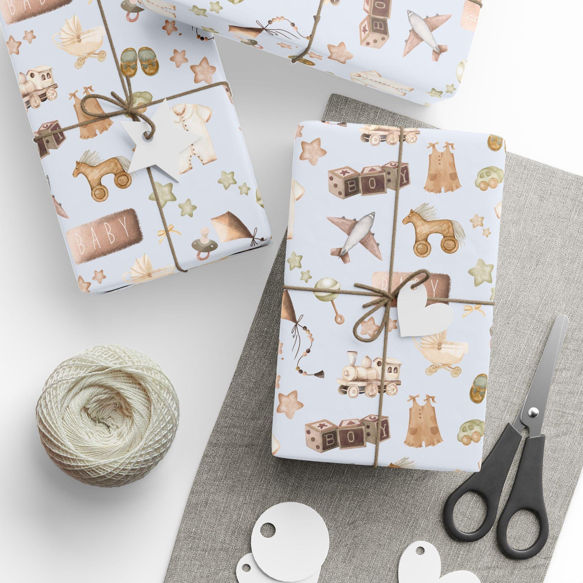 Baby Boy Watercolor Gift Wrap: Blue & Brown Nursery Decor