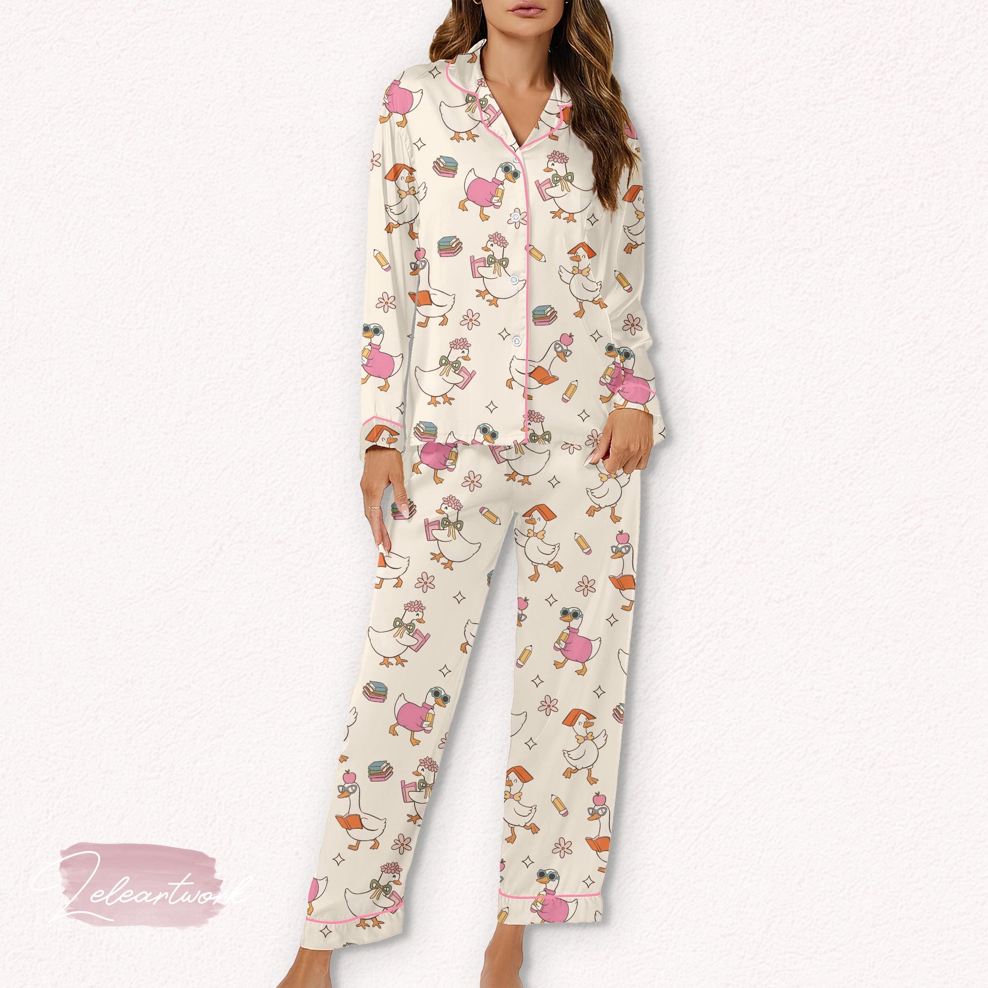 Back to School Goose Set – Cute Teacher Pajamas with Bookish Goose Print, Cozy Sleepwear for Fall, Classroom, or Study Nights