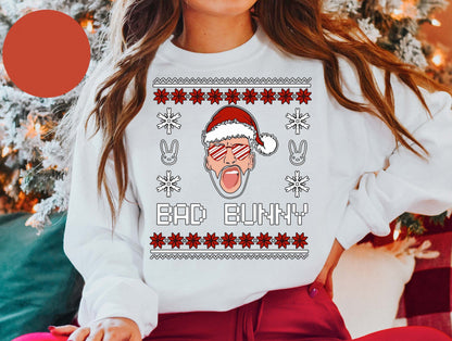 Bad Bunny Christmas Sweatshirt, Retro Vintage Bad Bunny Sweatshirt, Ugly Christmas Sweatshirt, Bad Bunny Gift Sweatshirt