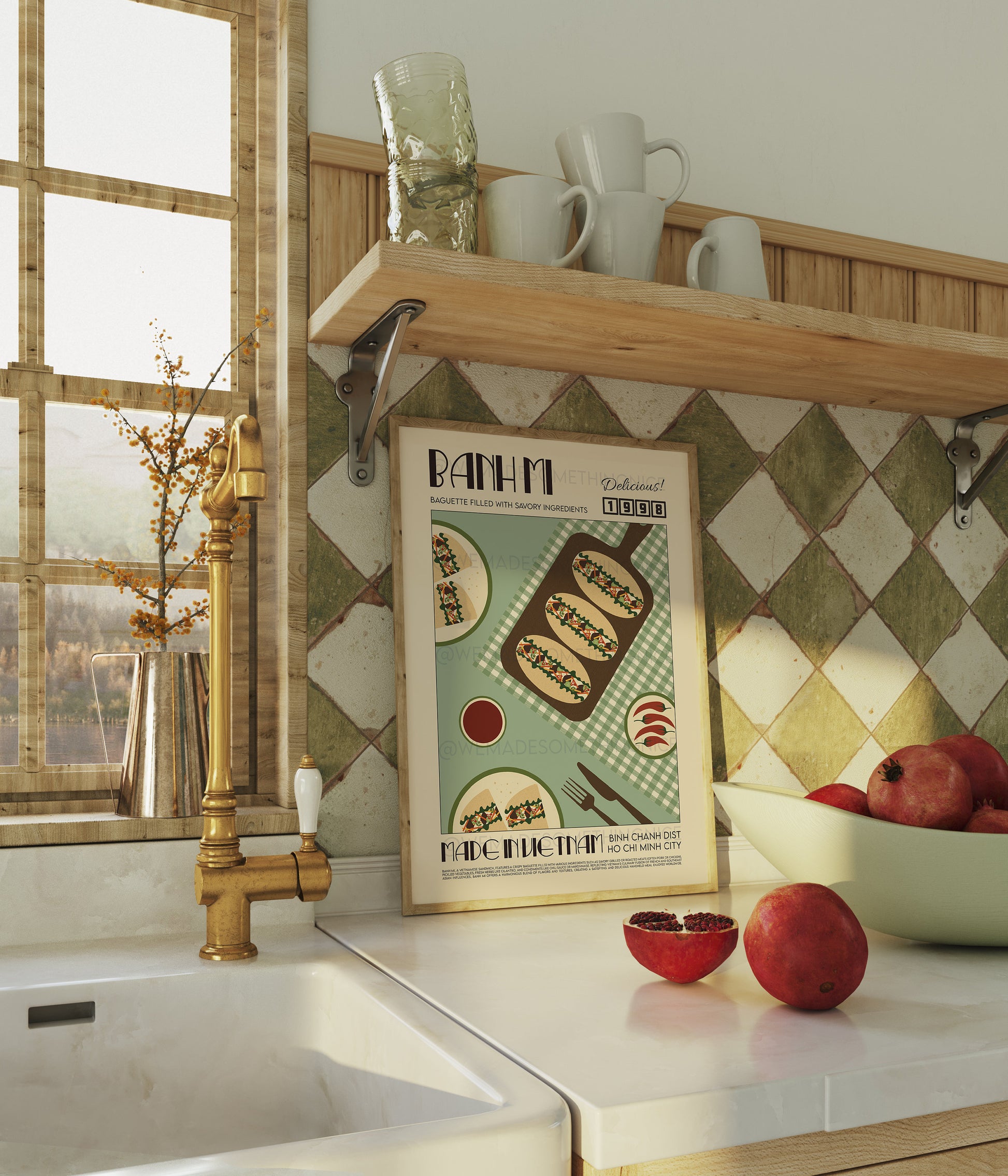 Banh Mi Poster, Food Print, Modern Kitchen Decor, Japanese, Korean Food, Chef Print, Bar Art, Exhibition Poster, Retro Art, Vietnam