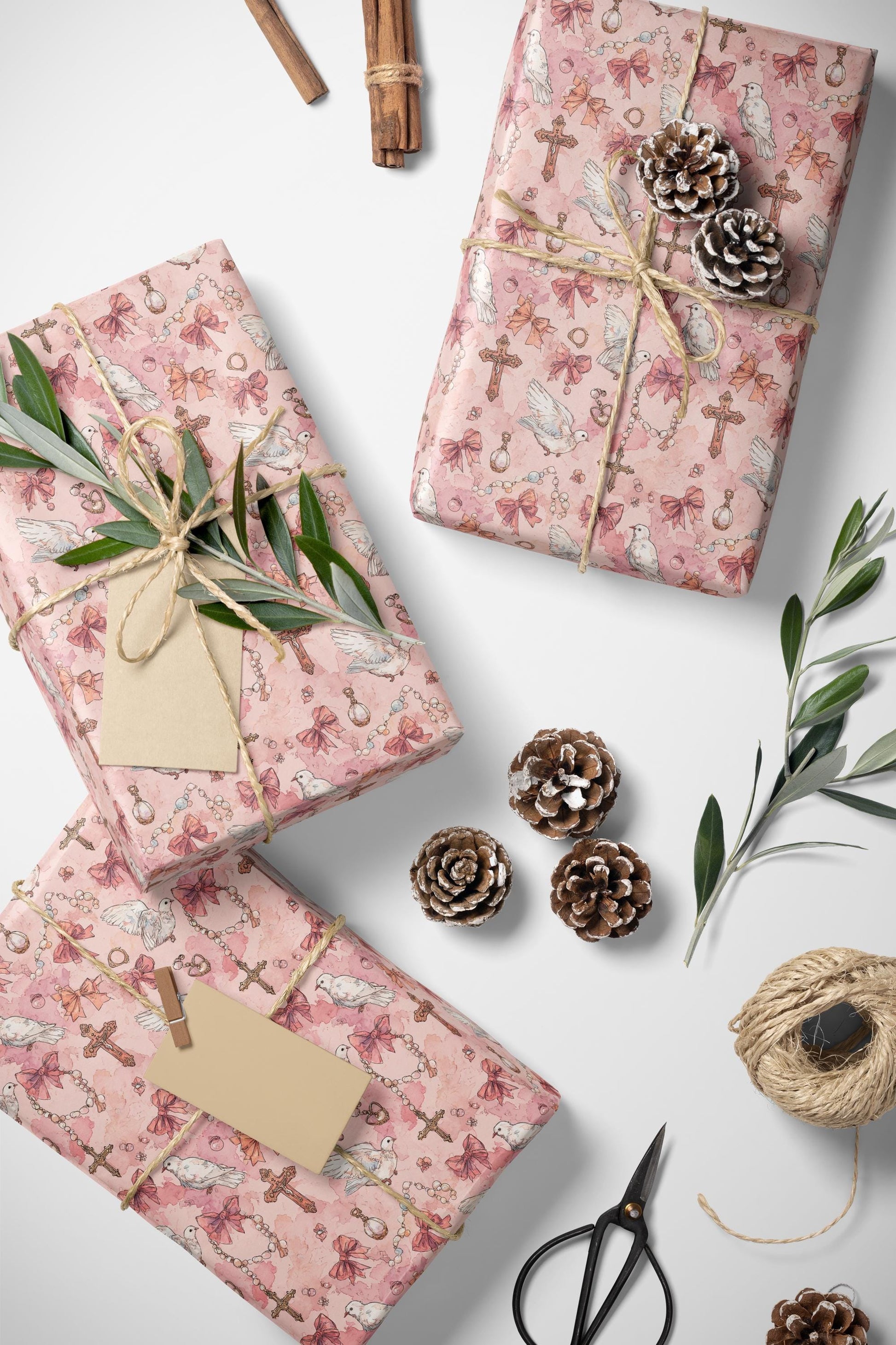 Baptism Gift Wrapping Paper Watercolor Coquette | Christian Baby Girl Christening Gift Wrap #16