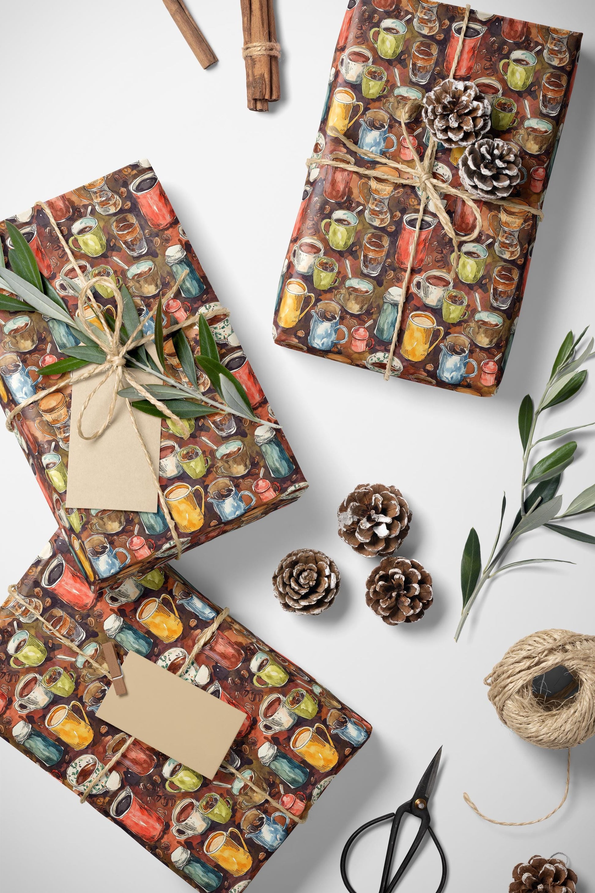 Barista Gift Wrap Premium Wrapping Paper | Watercolor Coffee Beans | Cozy Coffee Addict Supplies #9