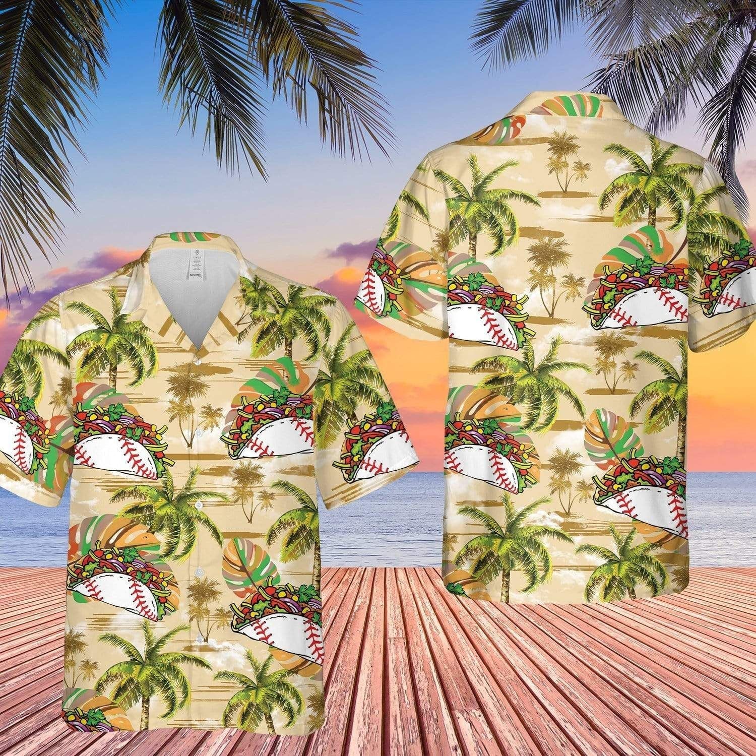 Baseball And Tacos Palm Tree White Hawaiian Shirt, Hawaiian For Gift