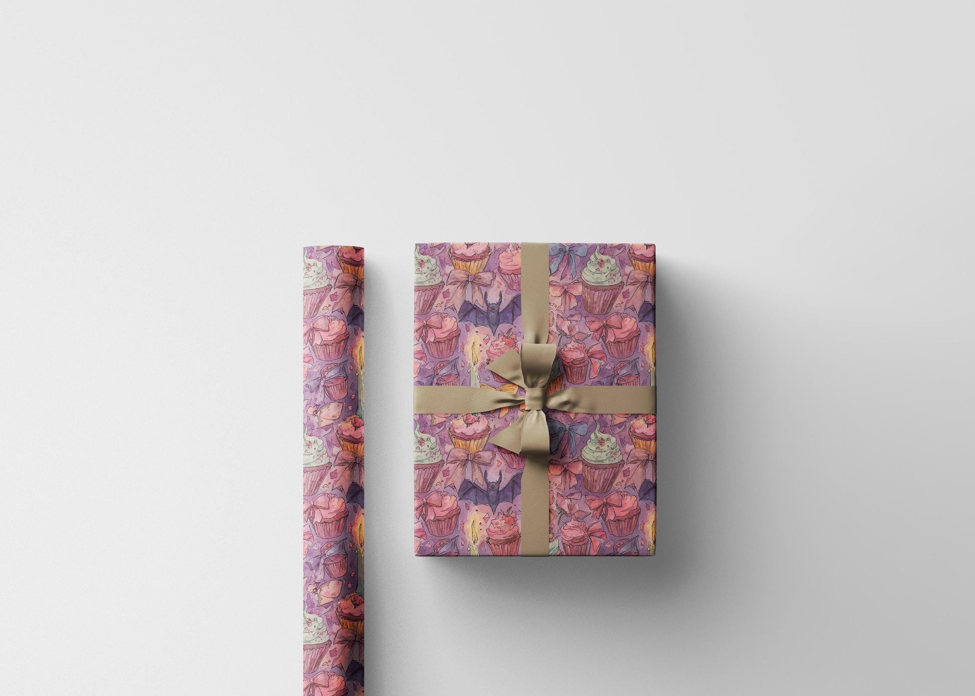 Bat Themed Baby Shower & Birthday Gift Wrap, Creepy Cute Wrapping Paper for Goth Moms and Witchy Kids #5