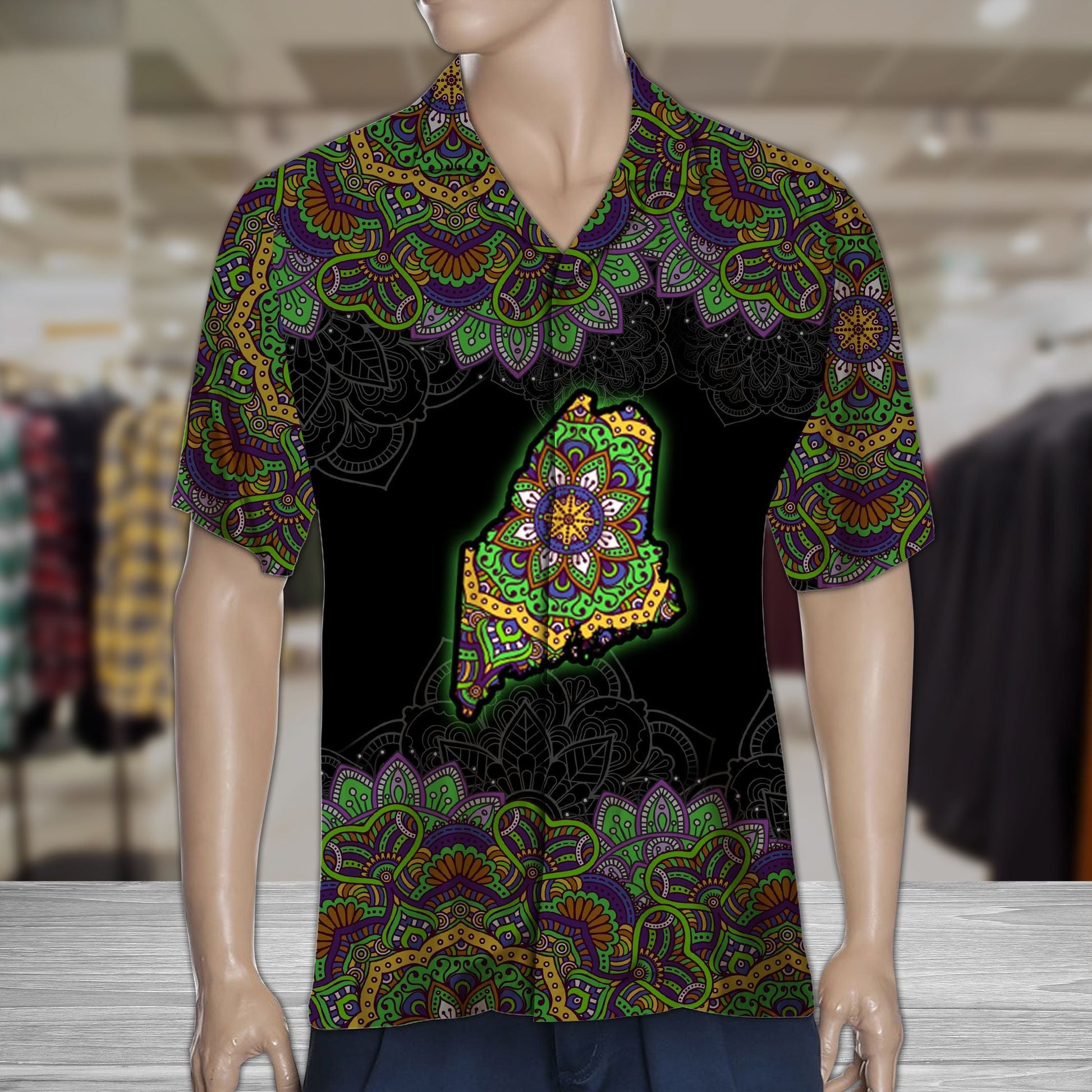 Beautiful Maine Flag With Mandala Flowers Hawaiian Shirt, Hawaiian For Gift
