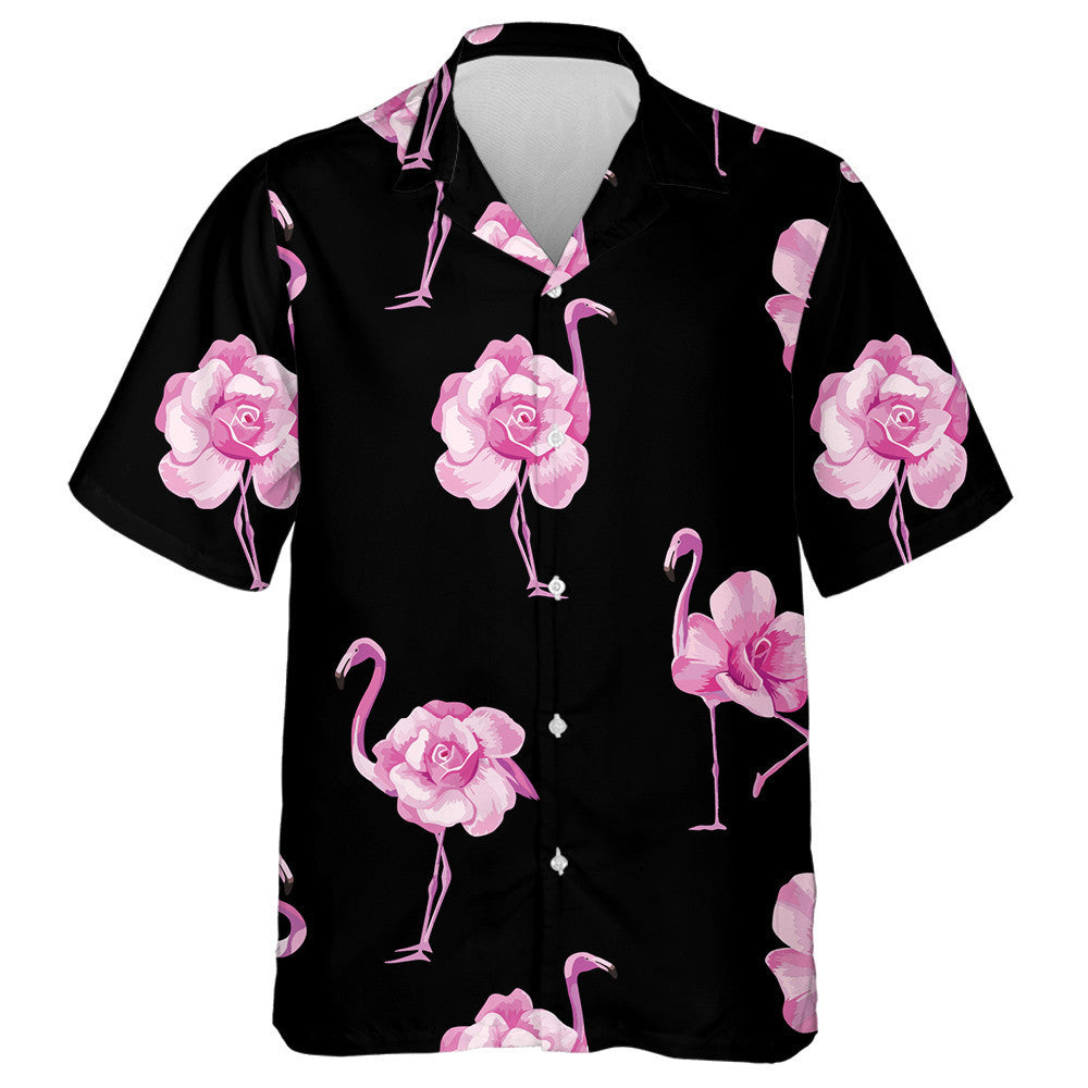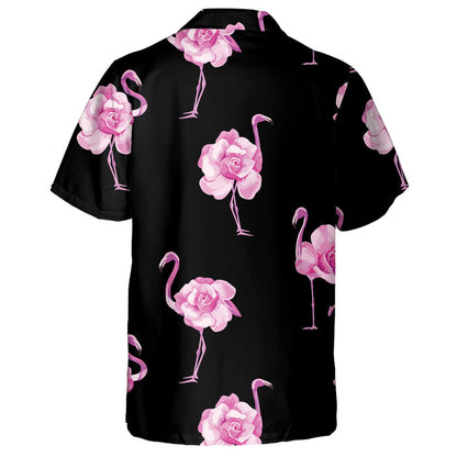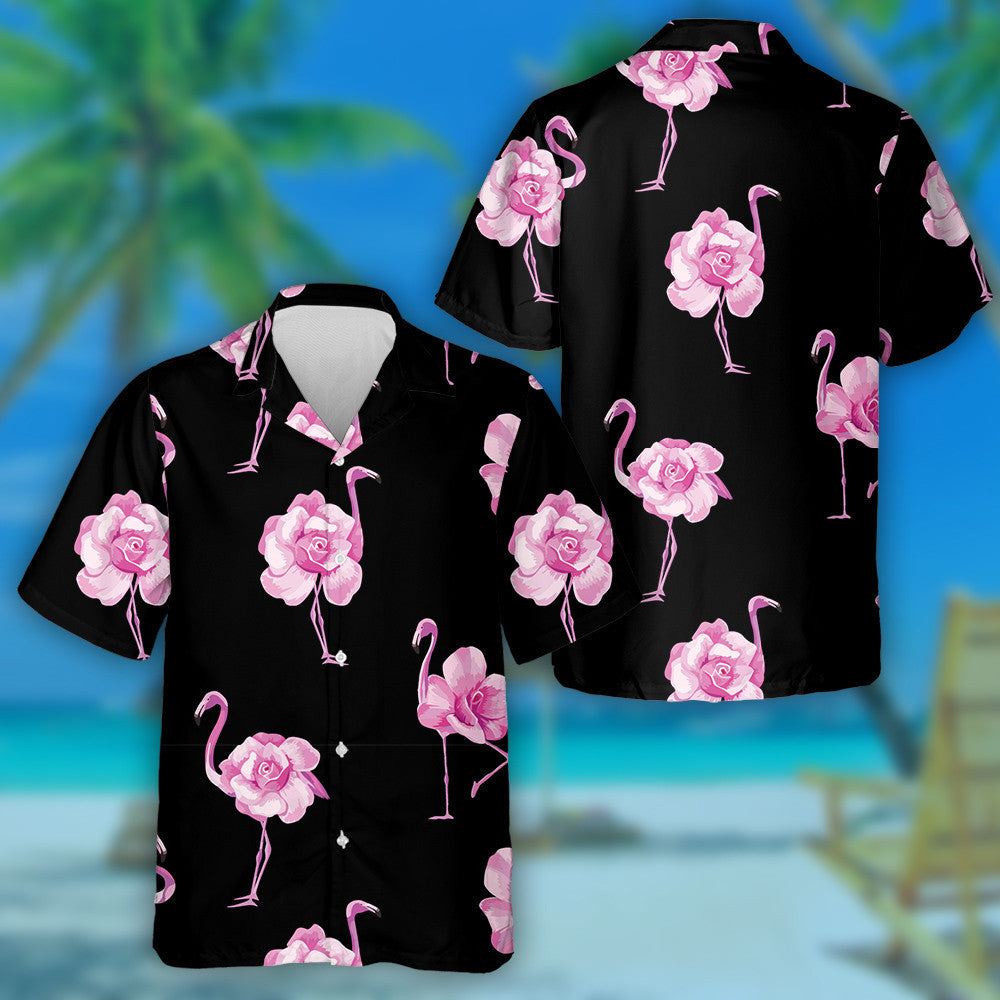 Beautiful Tropical Pink Flamingo And Rose Flowers Design Hawaiian Shirt, Hawaiian Shirt Gift, Christmas Gift
