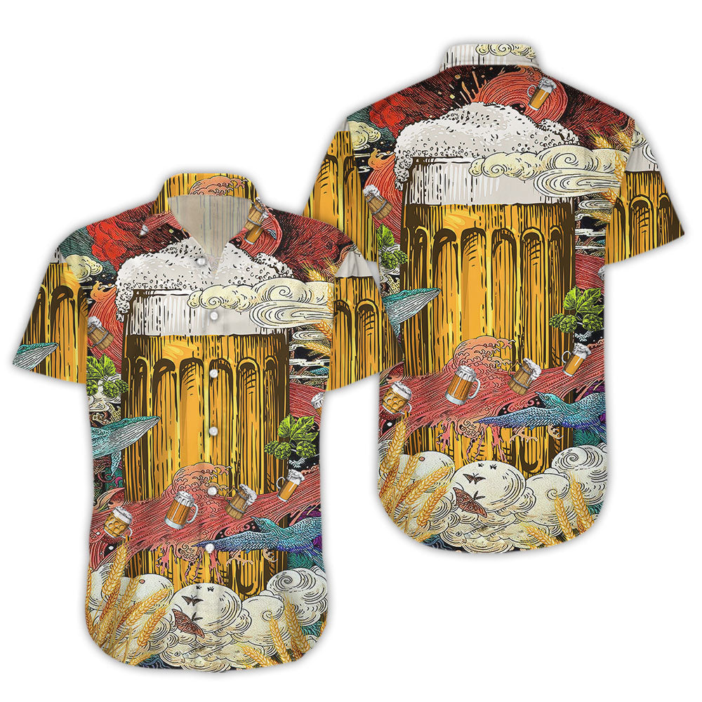 Beer Hawaiian Shirt - Beer Cup In Ocean Red Blue Hawaiian Aloha Hawaii Shirt - Hawaii Themed Gifts,Hawaiian Shirt Gift, Christmas Gift