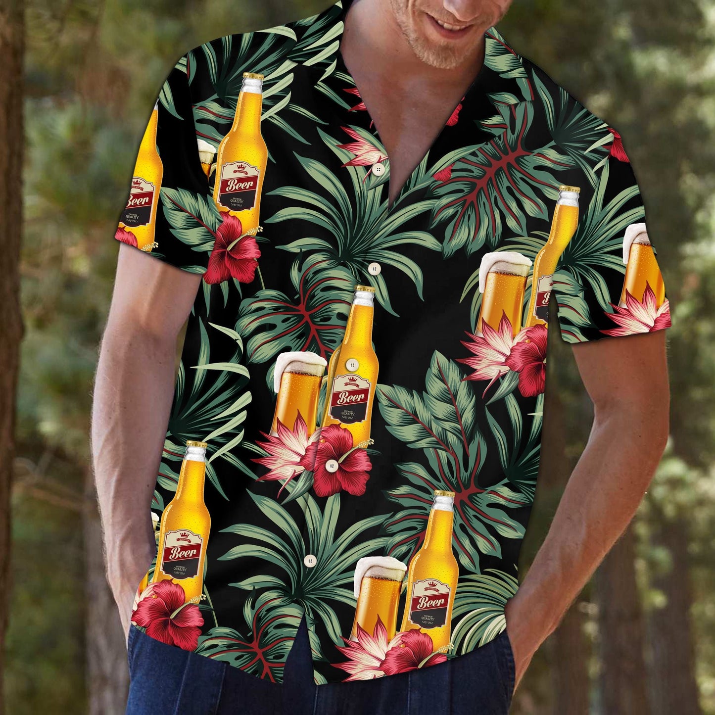 Beer Tropical Palm Leaves Summer Vacation Themed Hawaiian Shirt, Hawaiian Shirt Gift, Christmas Gift