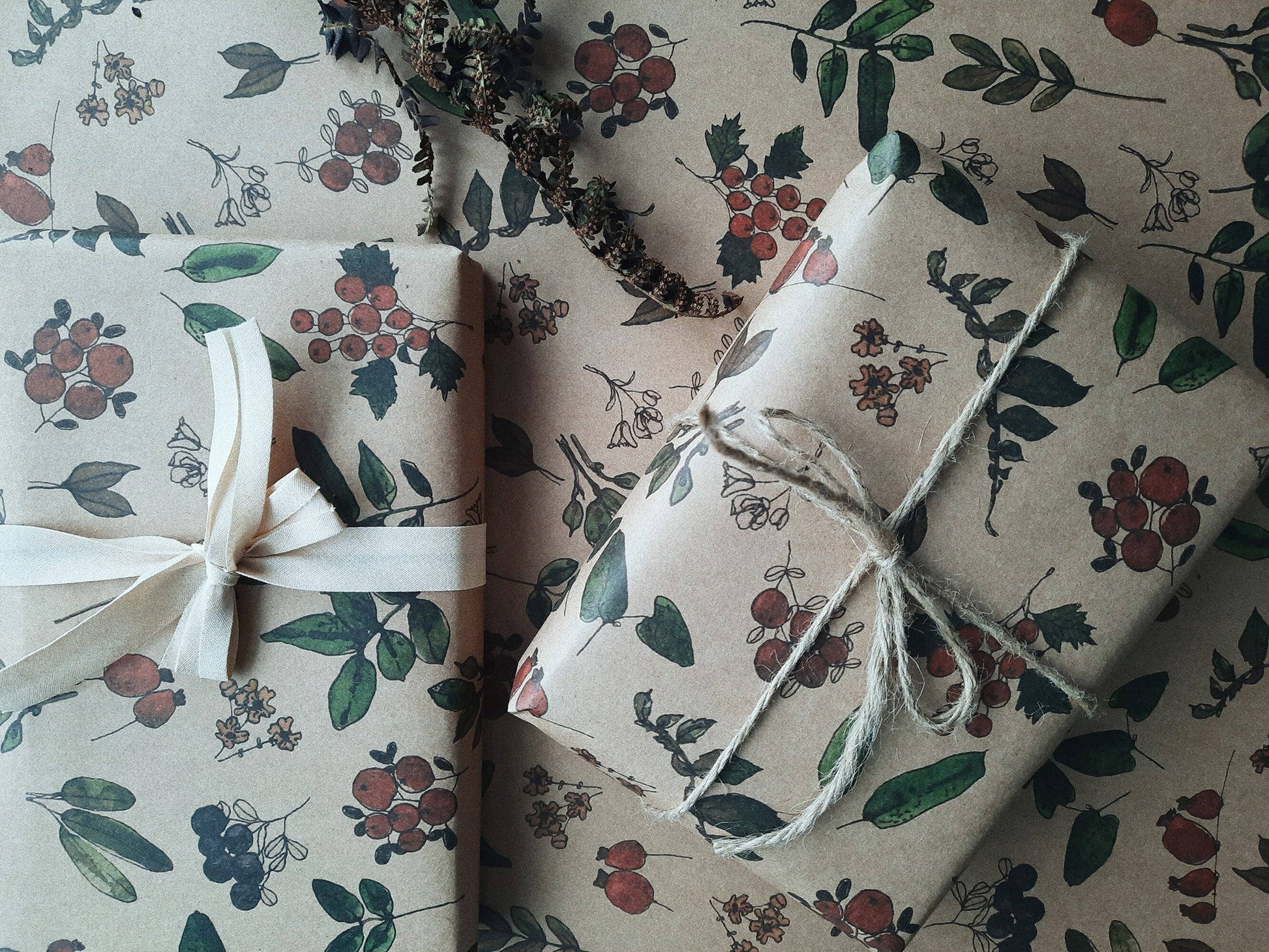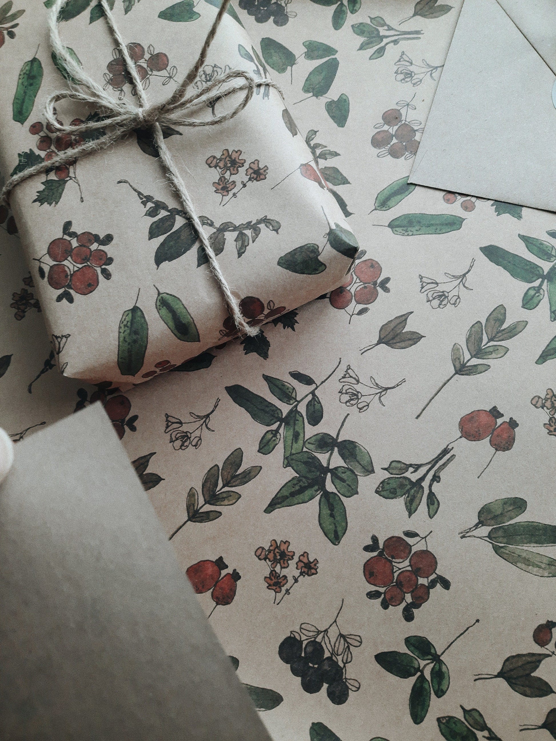 Berries and plants Wrapping paper, Gift Wrap, Wrapping, Floral Gift Warp, Wrapping paper, gift paper, floral wrapping paper, recycled paper