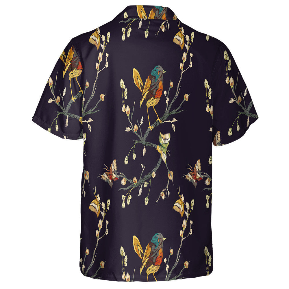 Bird Perched On Tree Brach Seeing Butterfly Hawaiian Shirt, Hawaiian Shirt Gift, Christmas Gift