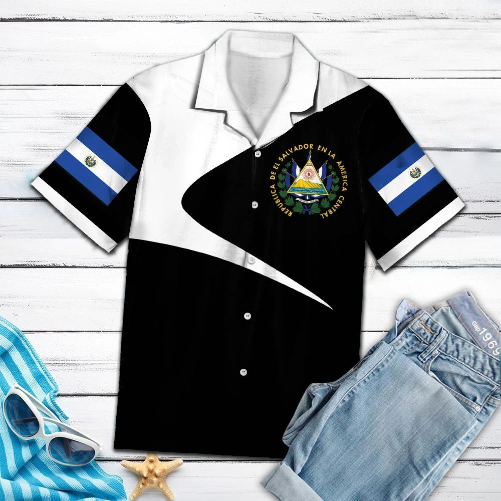 Black And White El Salvador Root Pattern Hawaiian Shirt, Hawaiian Shirt Gift, Christmas Gift