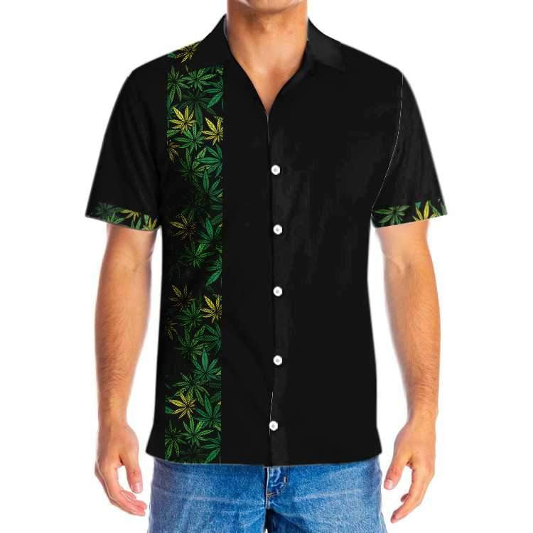Black Background Retro Cannabis Marijuana Design Hawaiian Shirt, Hawaiian For Gift