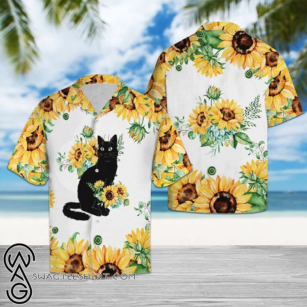 Black Cat And Sunflower Hawaiian Shirt,Hawaiian Shirt Gift, Christmas Gift