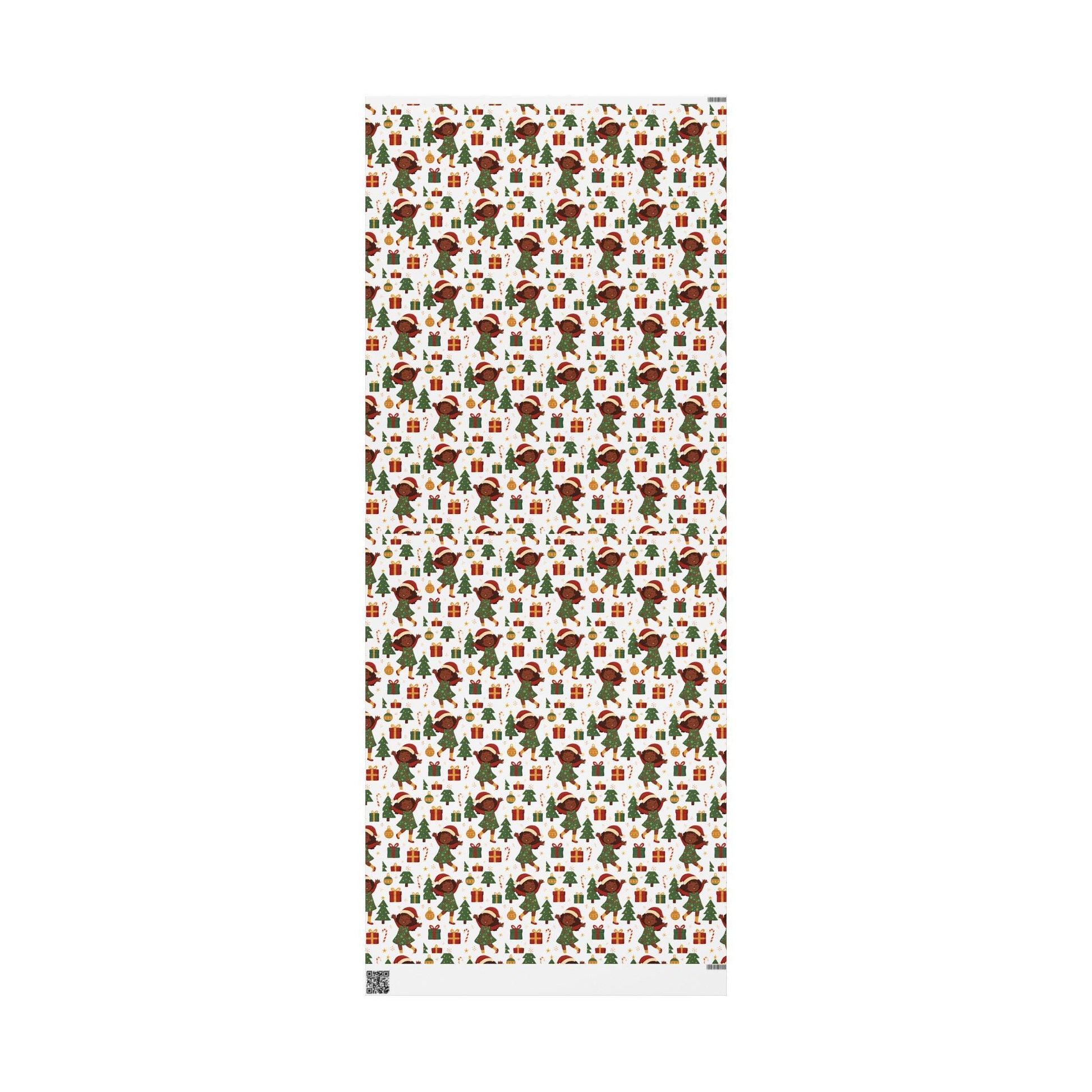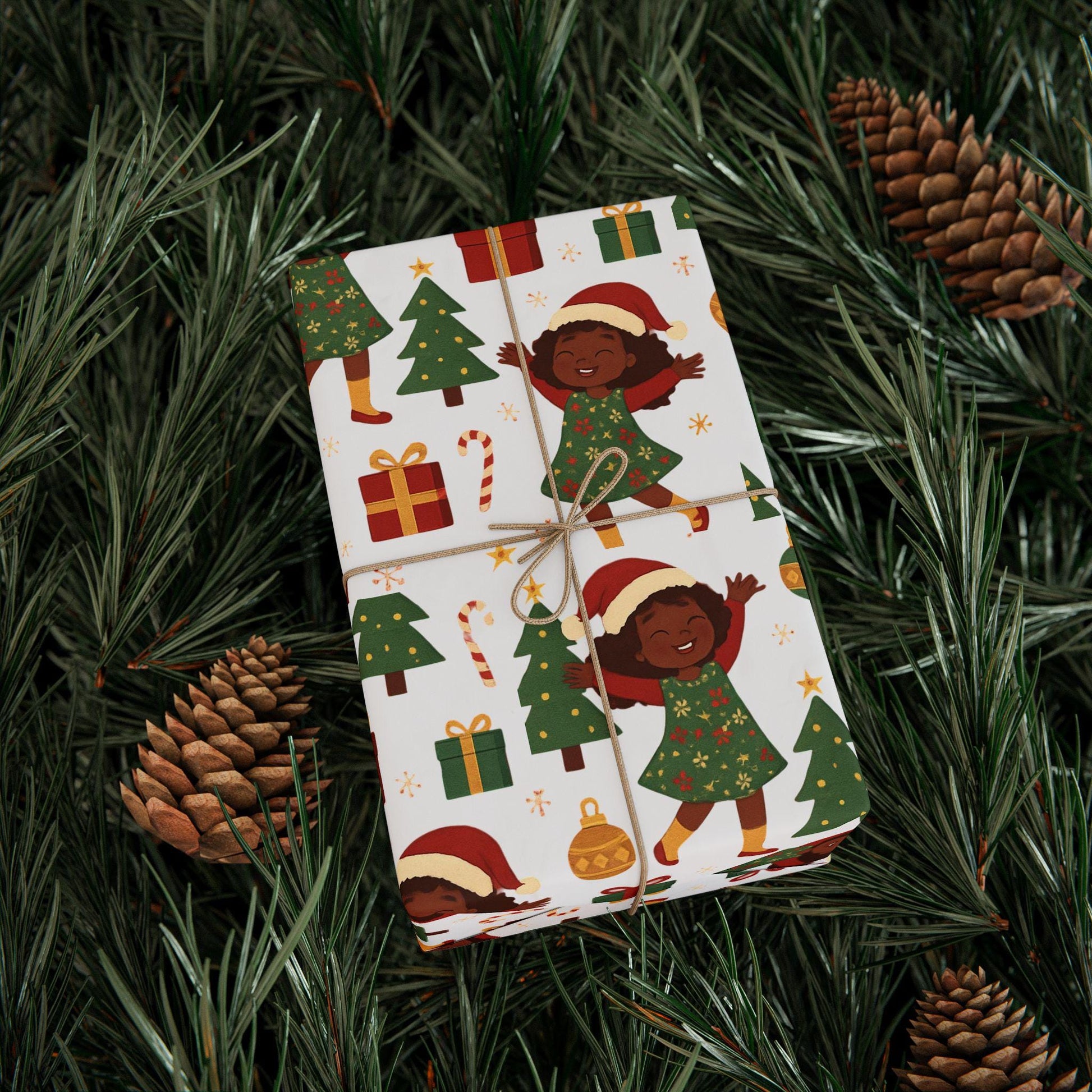 Black Christmas Wrapping Paper: Joyful Kids in Santa Hats