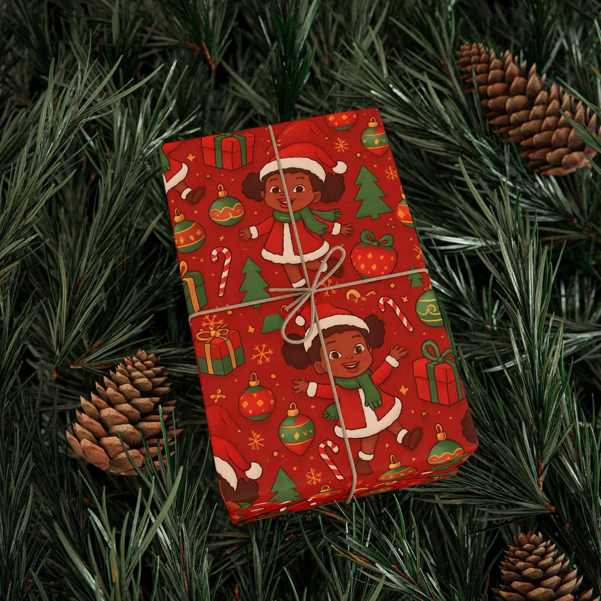 Black Joy Christmas Wrapping Paper | Red Holiday Gift Wrap | Festive African American Christmas Paper