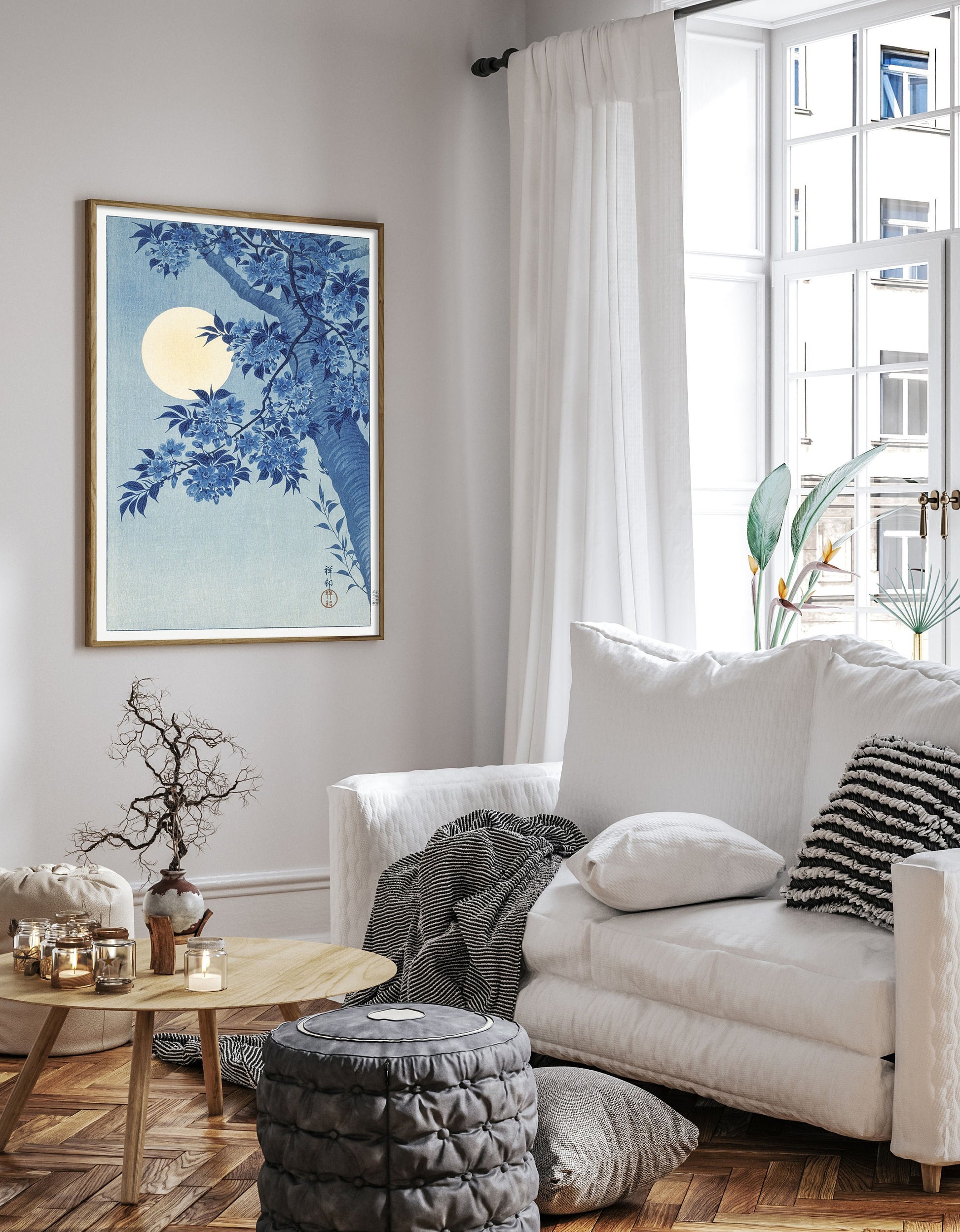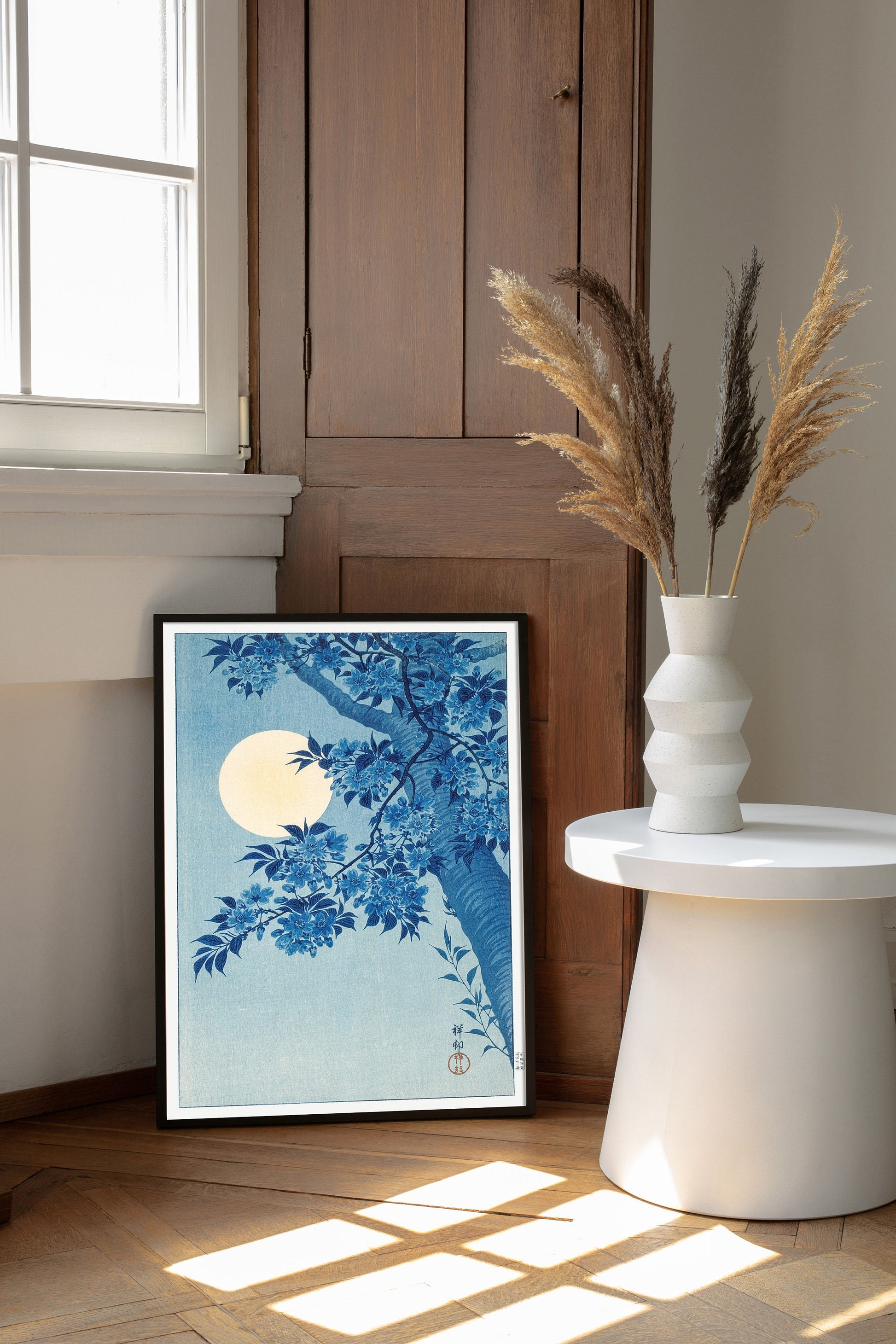Blossoming Cherry on a Moonlit Night by Ohara Koson, Vintage Poster, Blue Vintage Print, Vintage Japanese Art, Antique Drawing Art