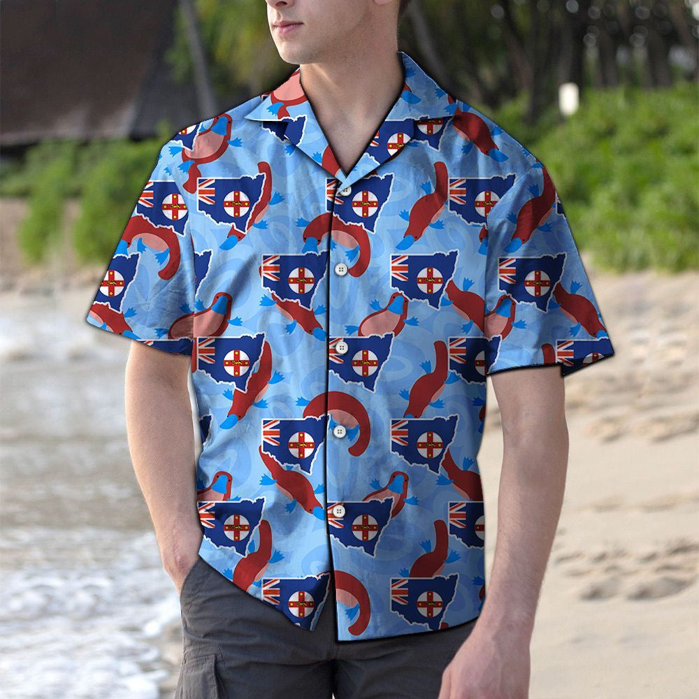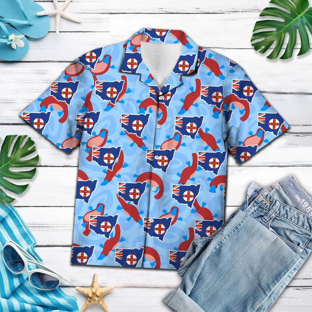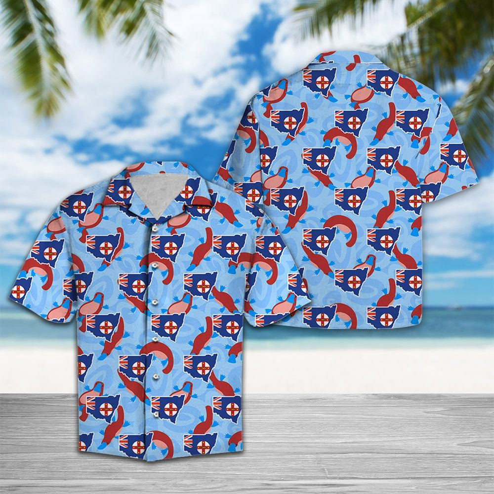 Blue Background New South Wales Platypuses Pattern Hawaiian Shirt, Hawaiian Shirt Gift, Christmas Gift
