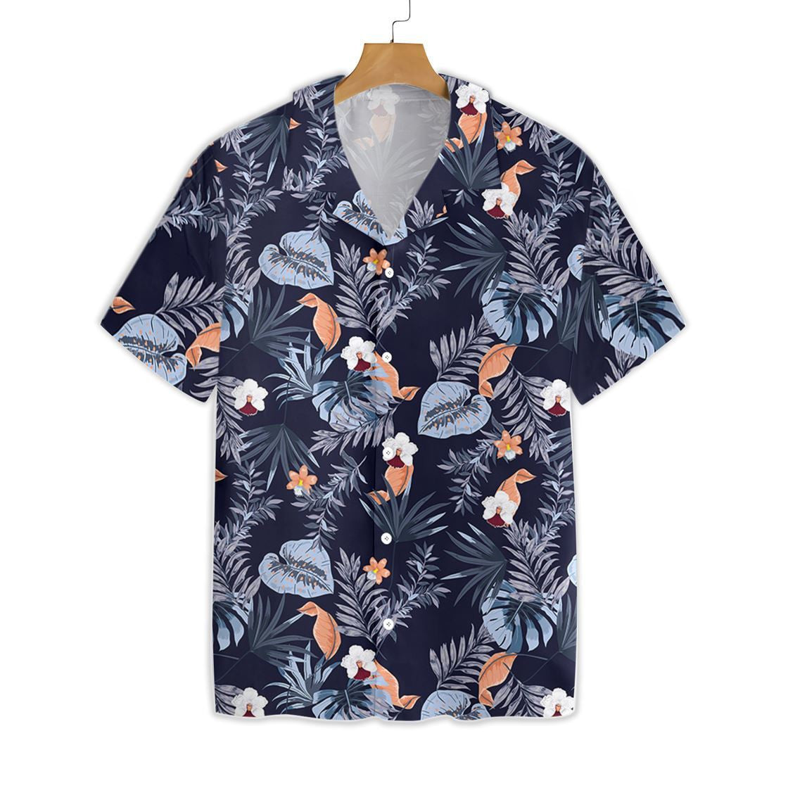 Blue Flower On Blue Background Design Hawaiian Shirt, Hawaiian For Gift
