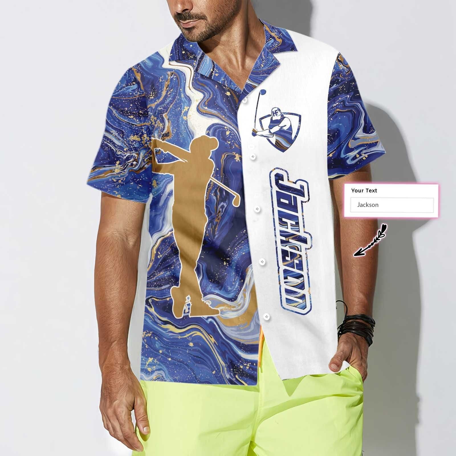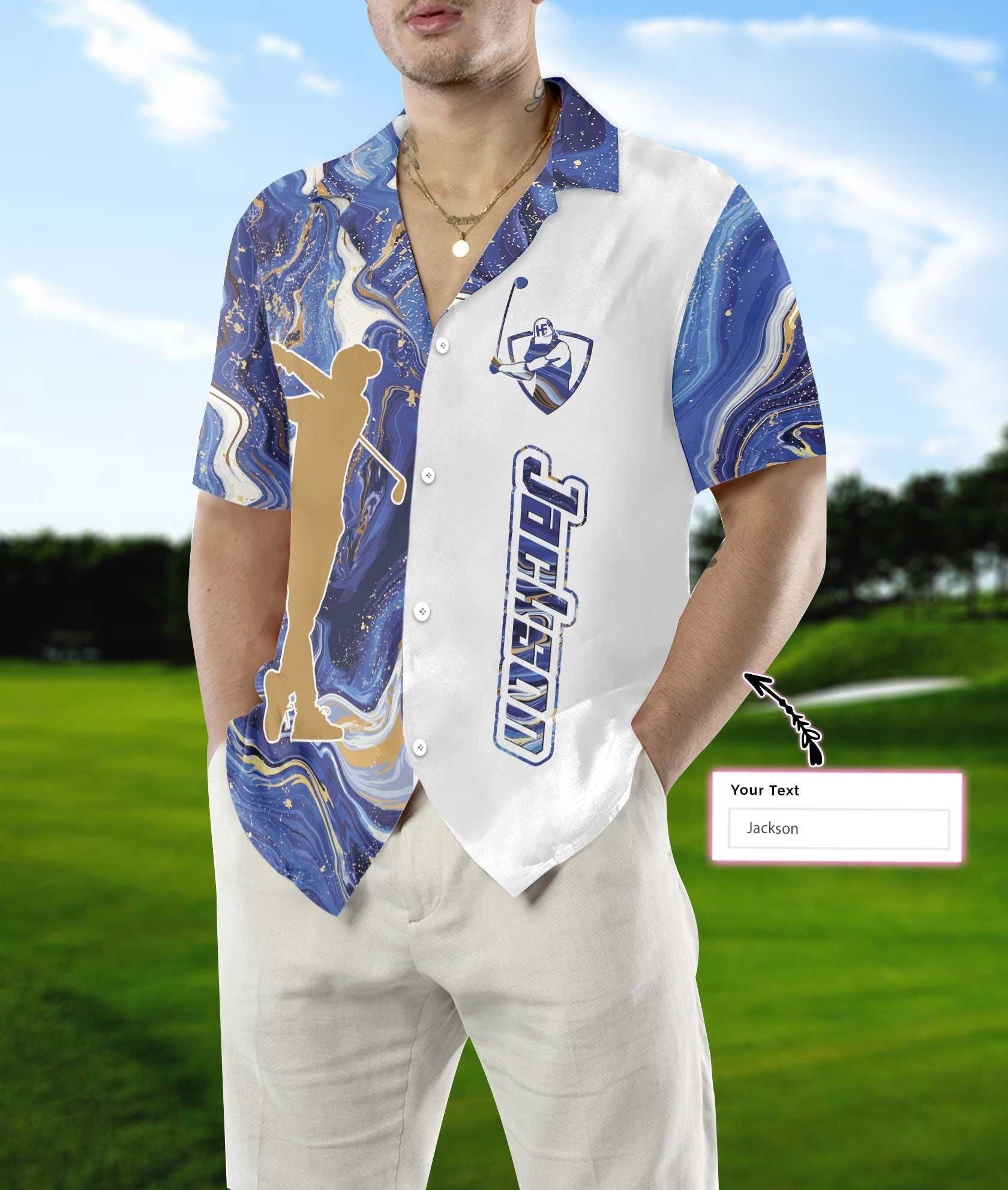 Blue Marble And Gold Silhouette Custom Name Hawaiian Shirt, Hawaiian Shirt Gift, Christmas Gift