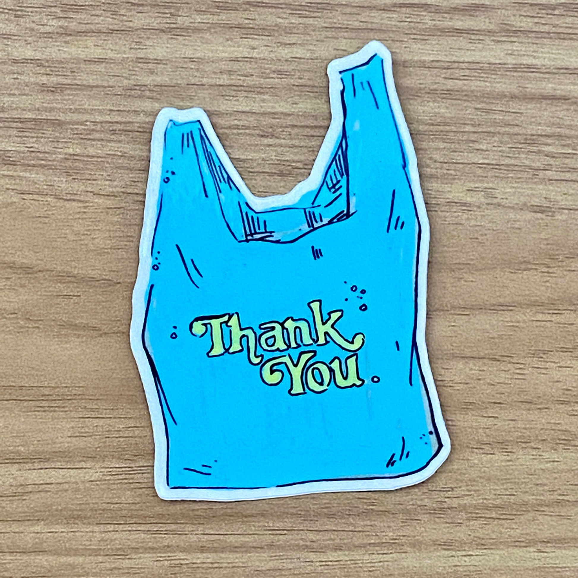 Blue Thank You Grocery Bag Icon | 3" Sticker Decal | Grocery Shopper Tote