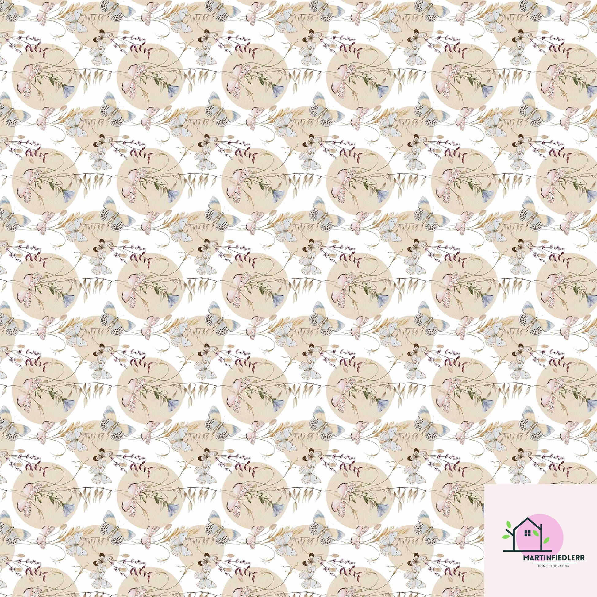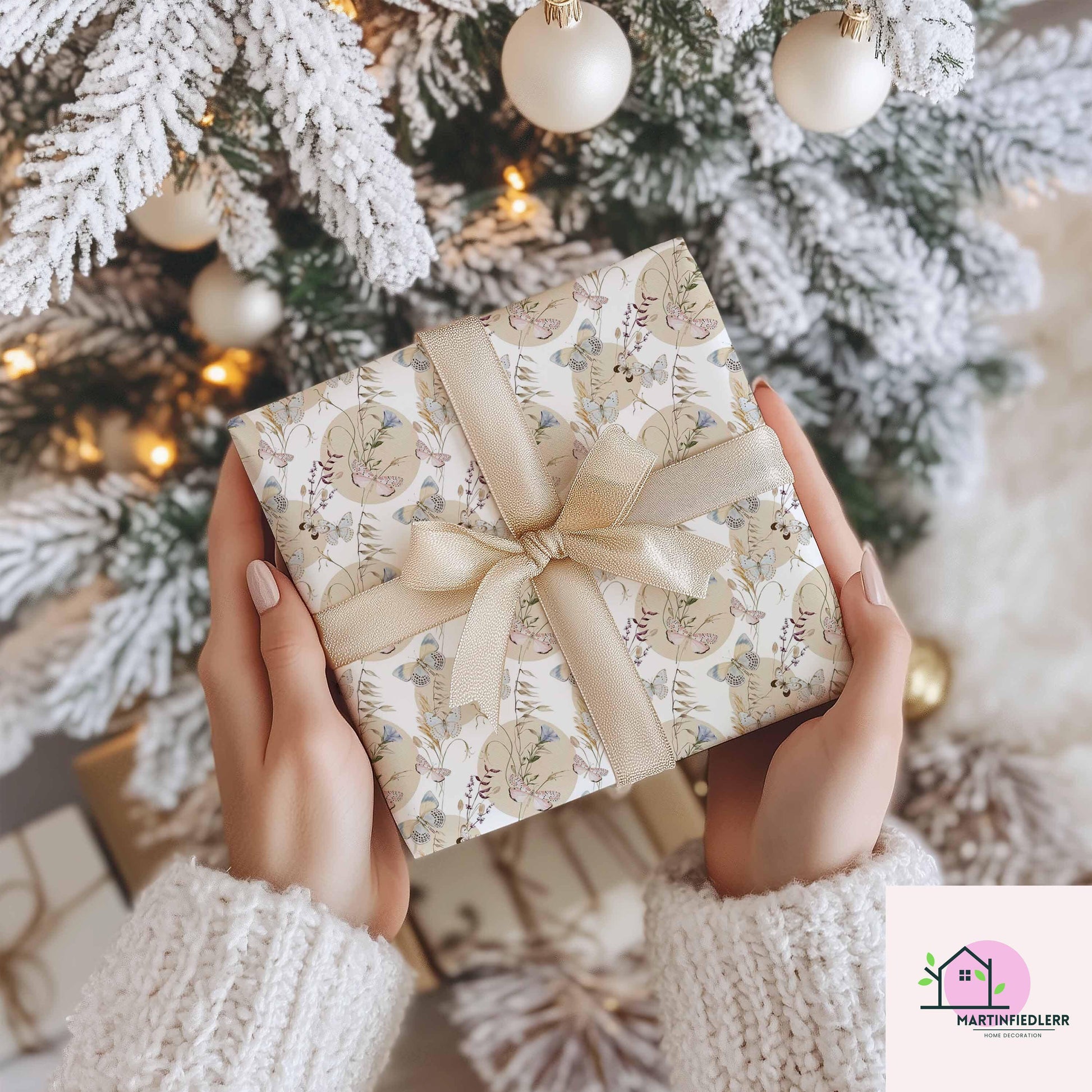 Boho Butterfly Wrapping Paper: Beige Wildflower Gift Wrap