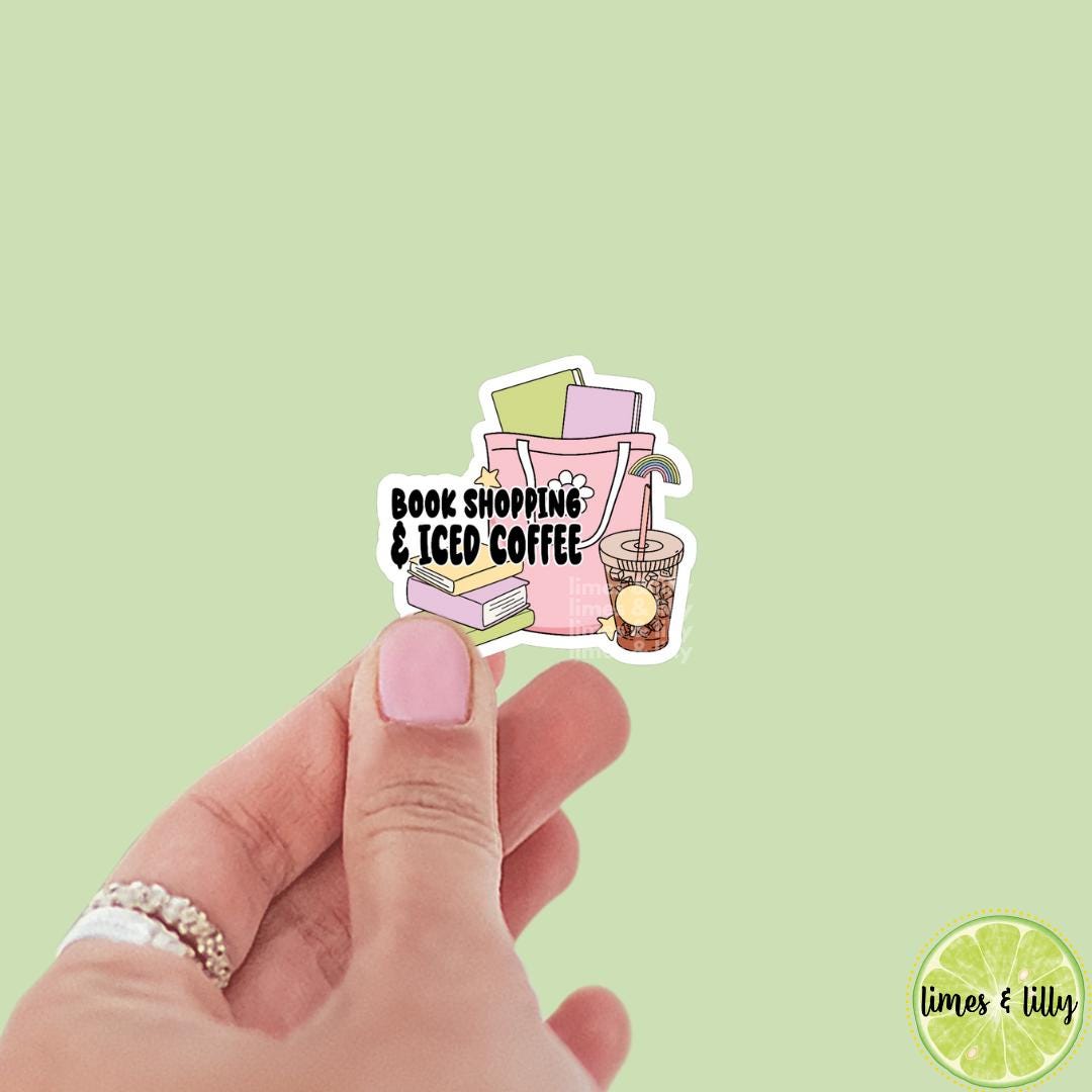 Book Shopping and Iced Coffee Tote Bag Vinyl Sticker | Kindle Sticker | Bookish Stickers | Mood Reader | Girly | Shopping Bag | Book Stack