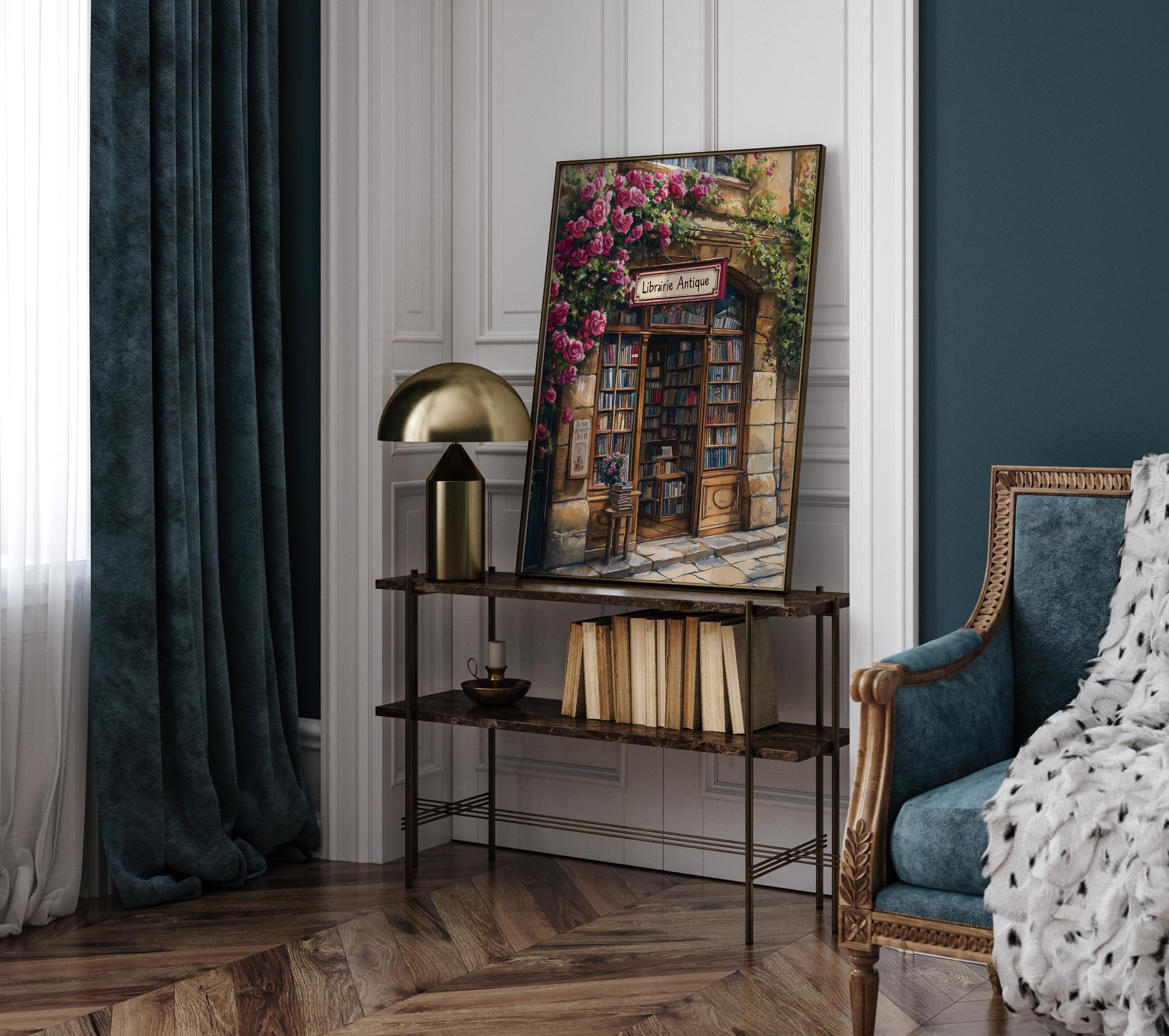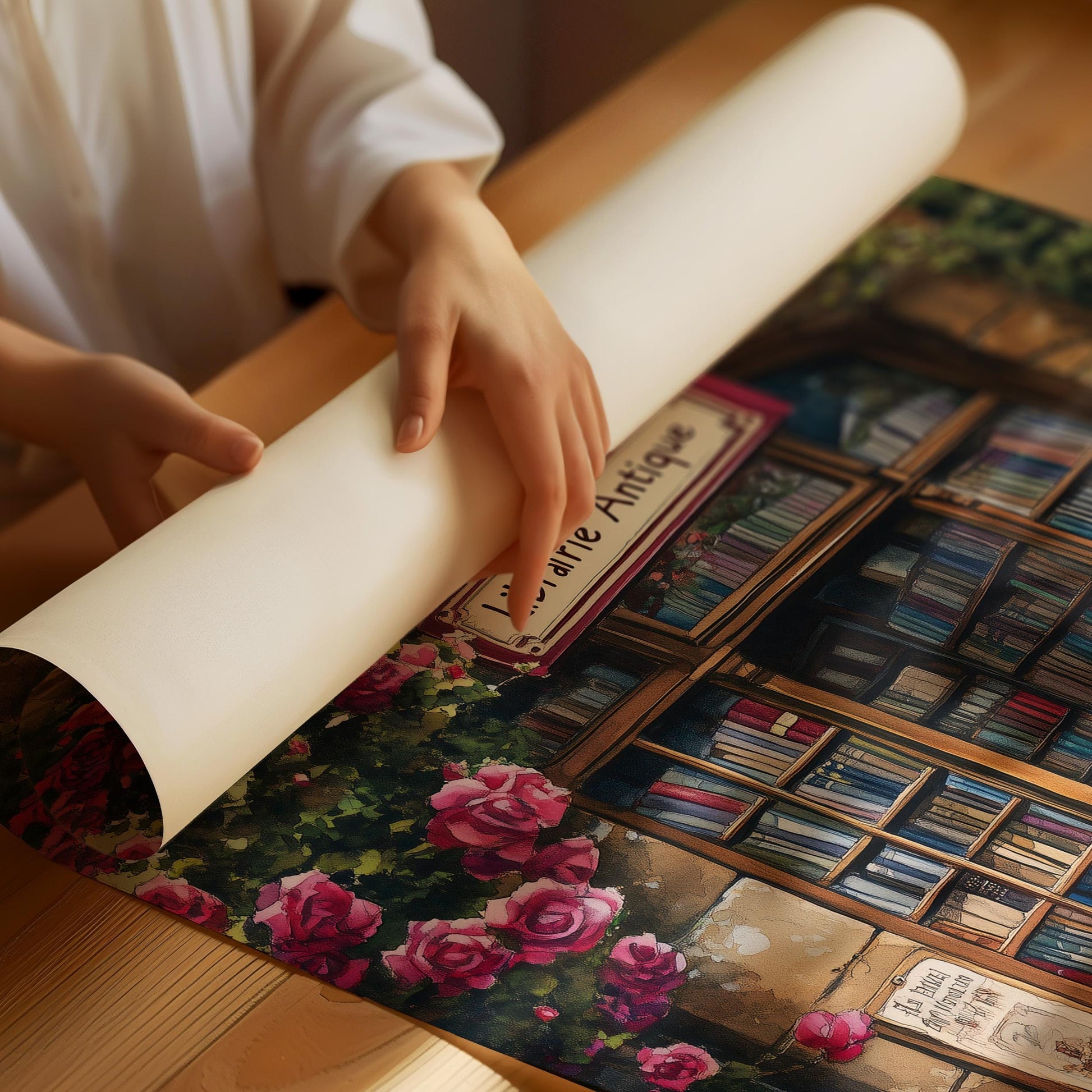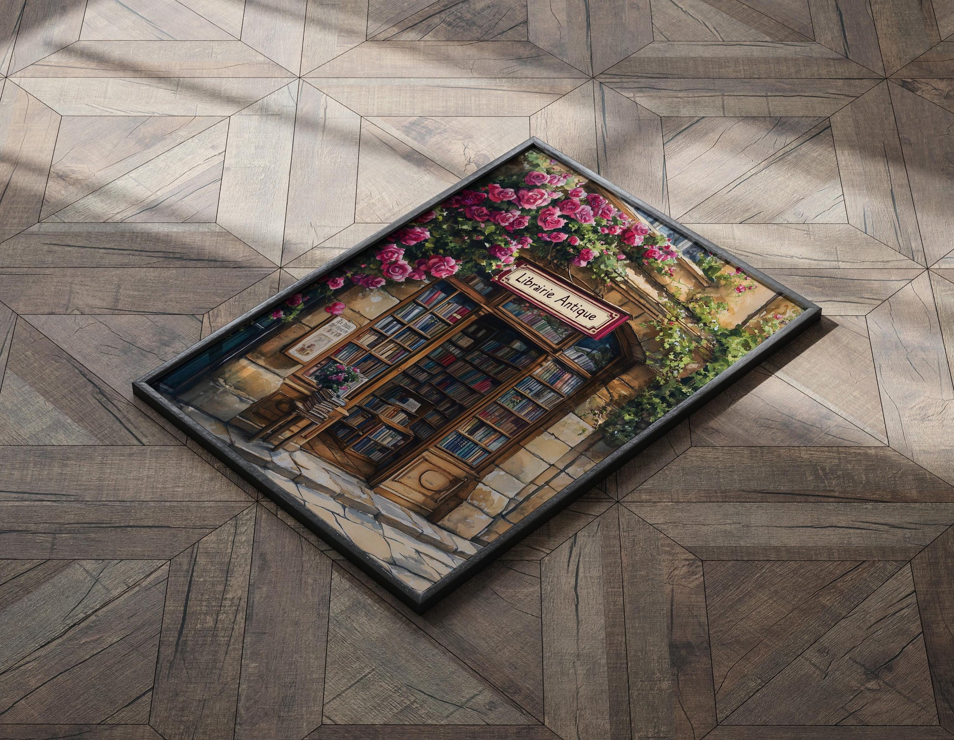 Bookstore Print, French Bookshop Art Print, Bookstore with Roses poster, Housewarming Gift, Bookstore print, Book lover gift, Bookish gift
