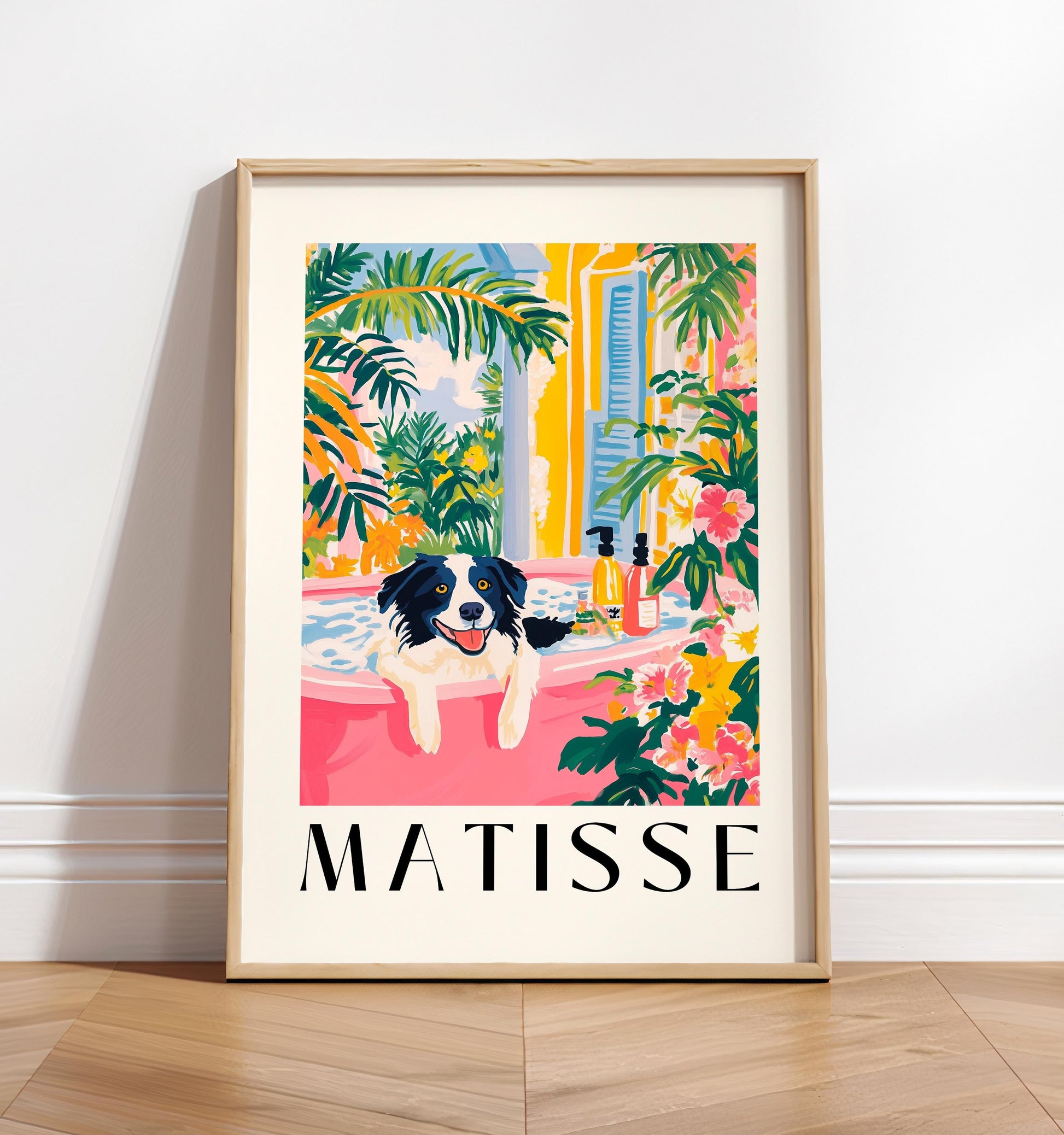 Border Collie Bathroom Print: Funny Pink Matisse Dog Art