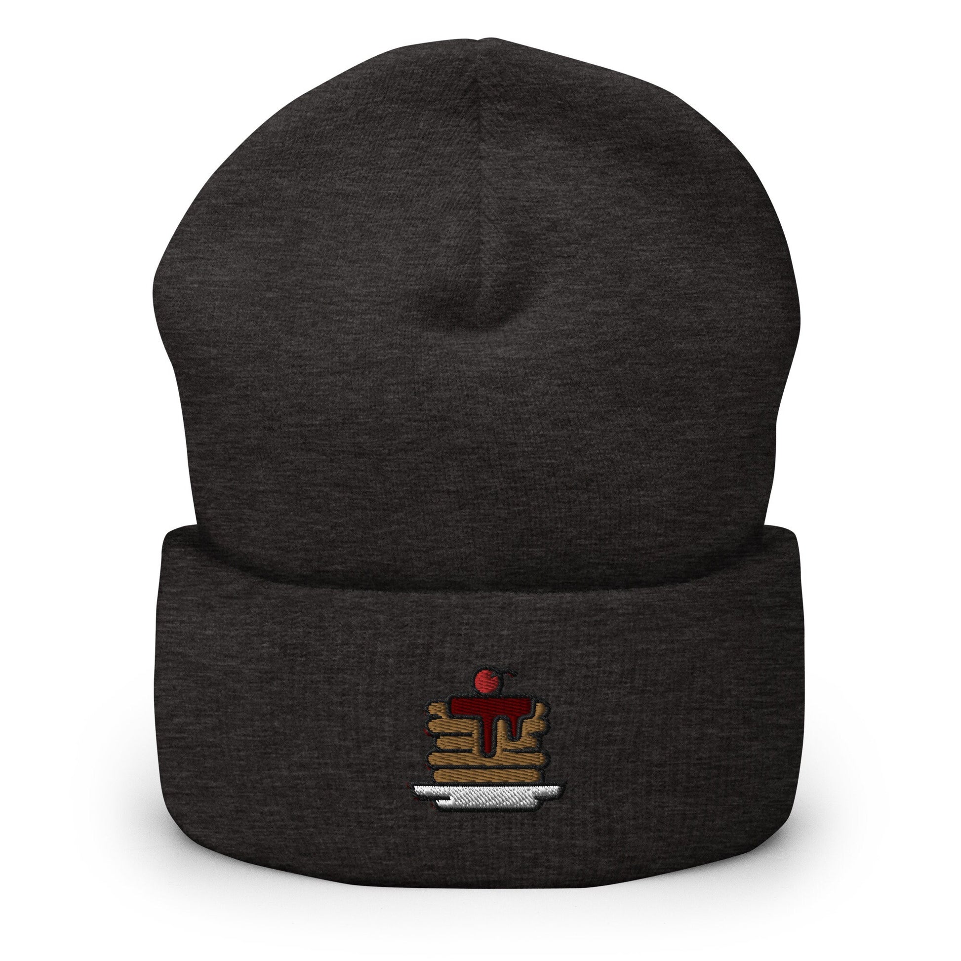 Breakfast Short Stack, Flapjacks, Stack of Pancakes Embroidered Beanie, Handmade Cuffed Knit Unisex Slouchy Adult Winter Hat Cap Gift