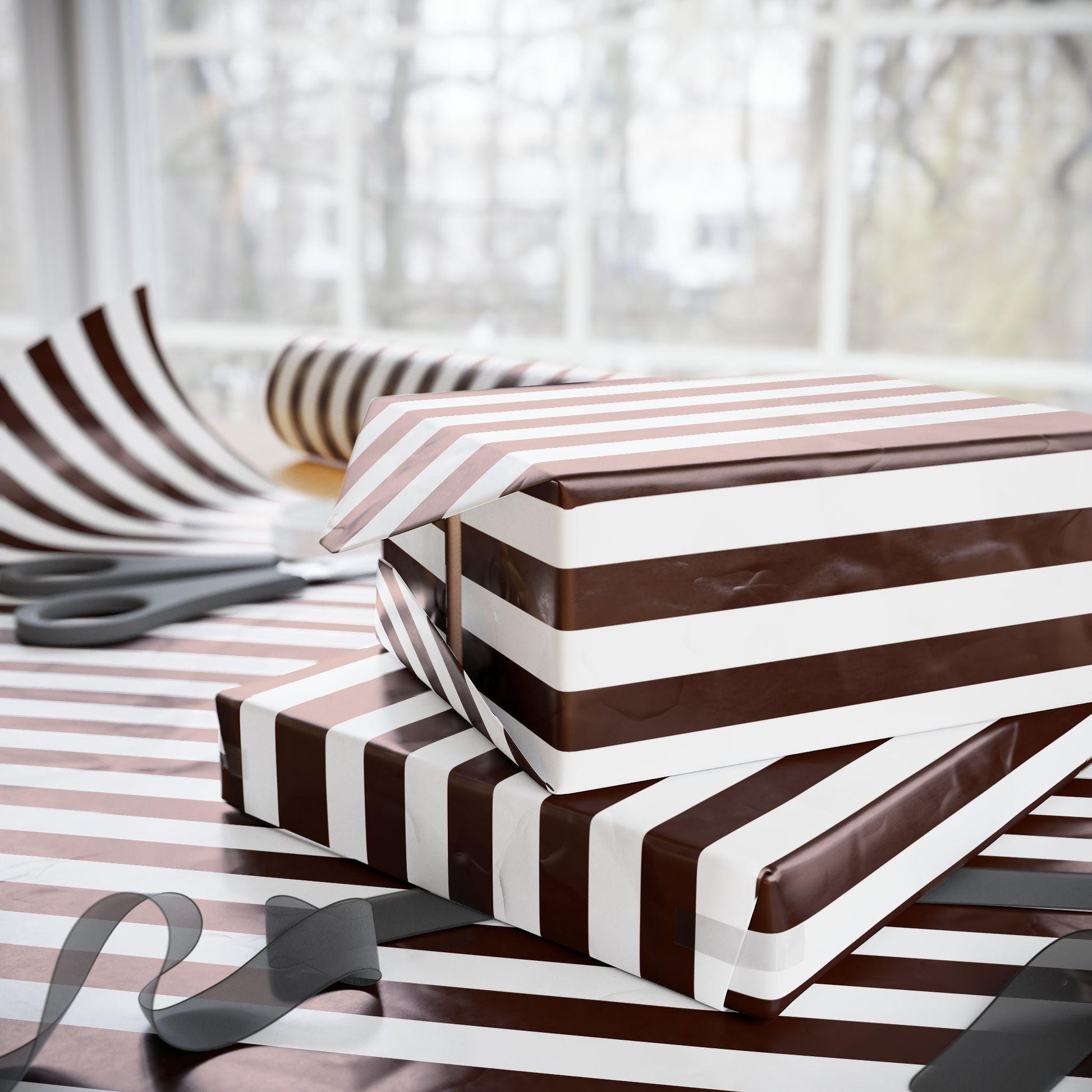 Brown and White Striped Wrapping Paper: Modern Minimalist Gift Wrap