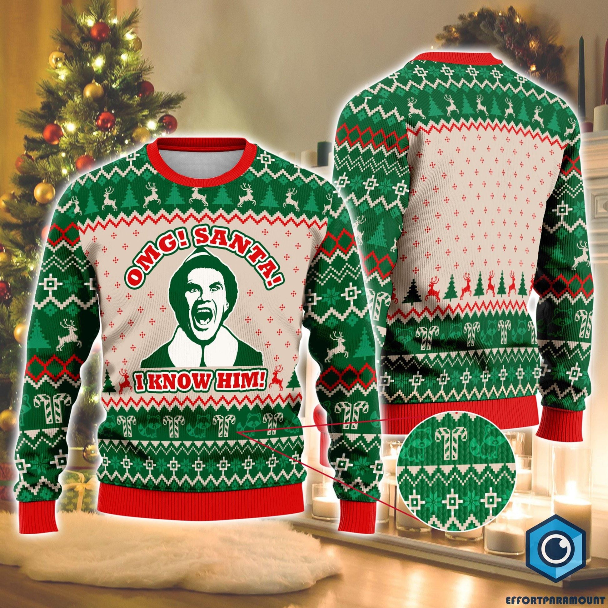 Buddy the Elf OMG Santa I Know Him Sweater, Elf Ugly Christmas Sweater, Elf Sweatshirt, Buddy the Elf Movie, Funny Xmas Gifts