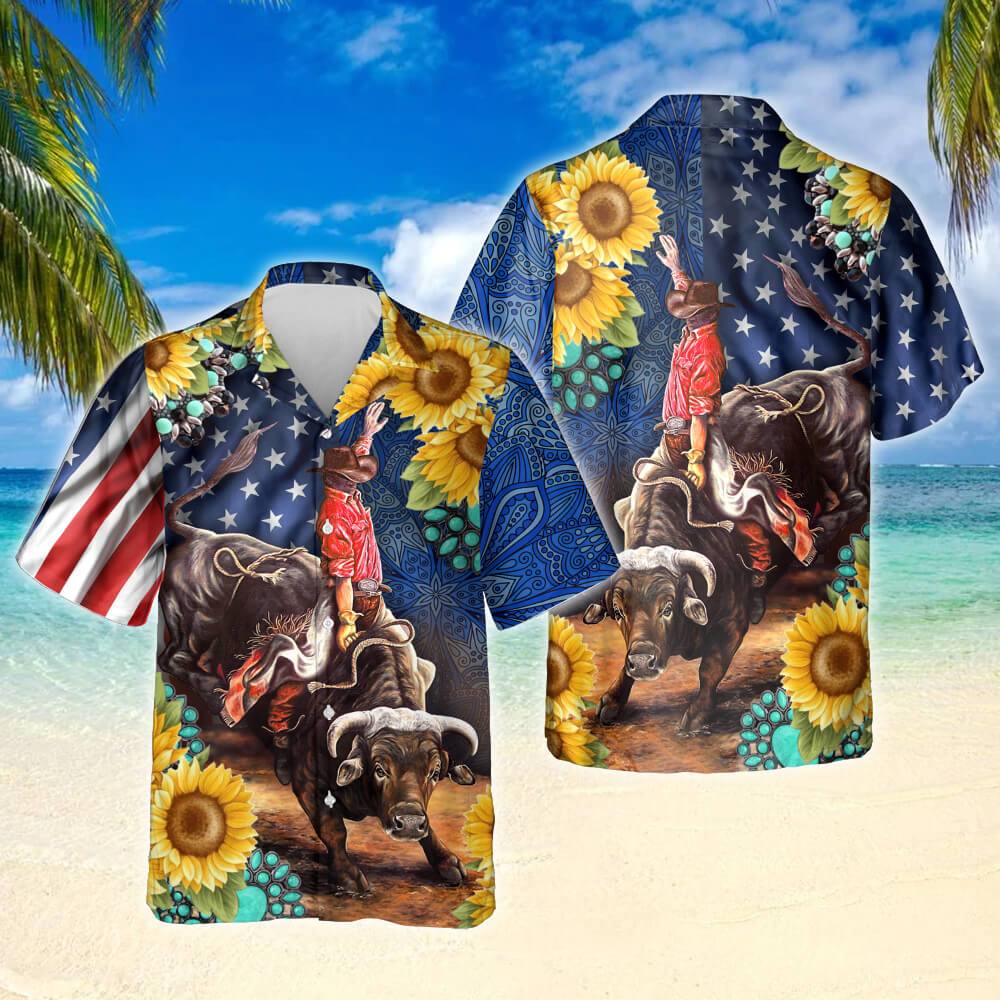 Bull Rodeo Sunflower Hawaiian Shirt,Hawaiian Shirt Gift, Christmas Gift