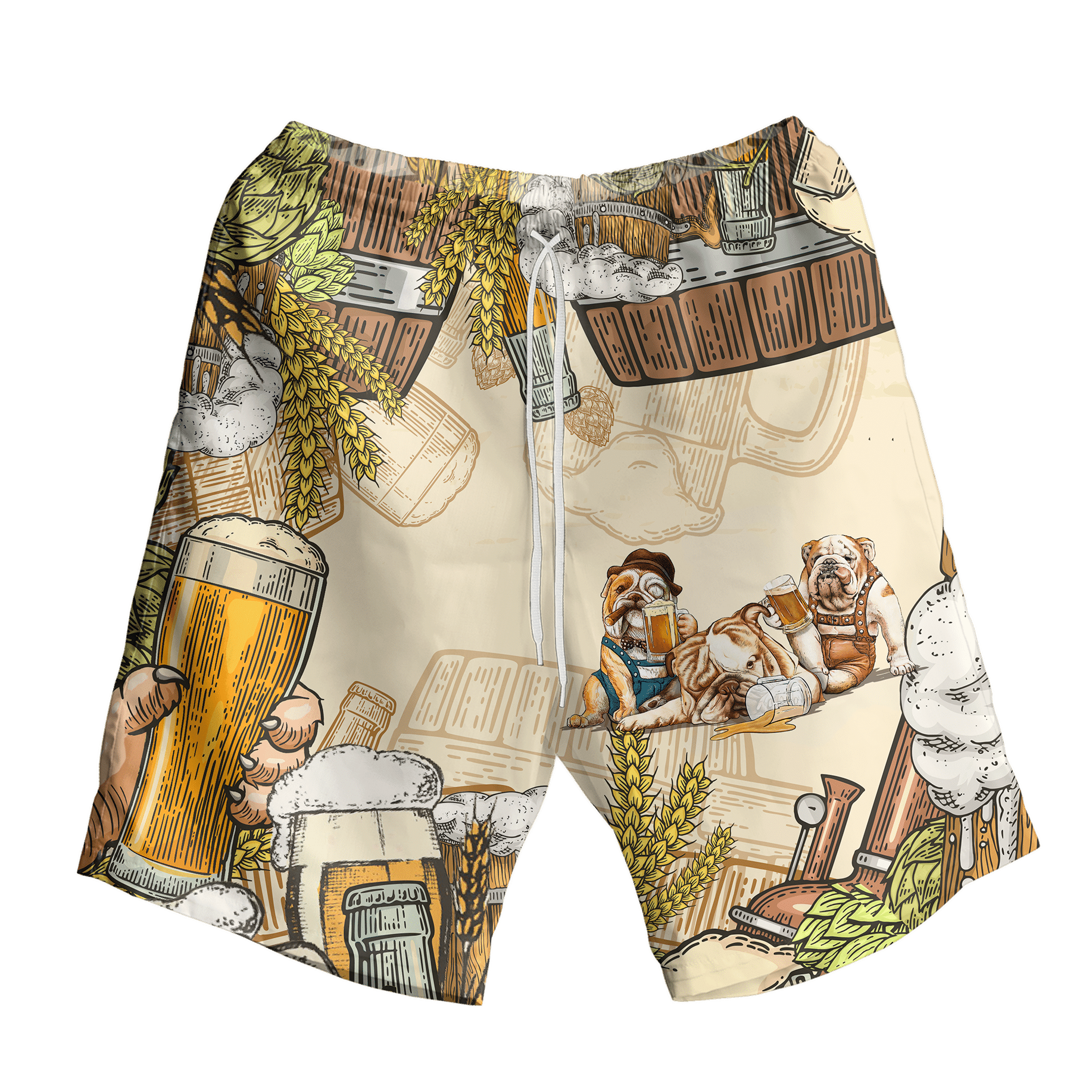 Bulldog Beer On Beige Background Design Hawaiian Shirt, Hawaiian For Gift