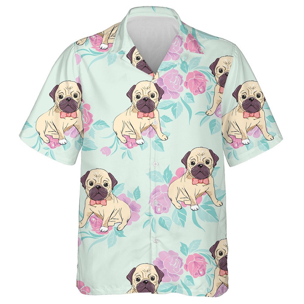 Bulldog On The Pink Flower Garden Hawaiian Shirt, Hawaiian For Gift
