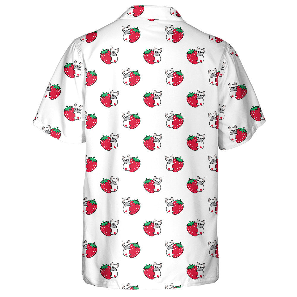 Bulldog Puppy Strawberry Fruit And Heart Hawaiian Shirt, Hawaiian For Gift