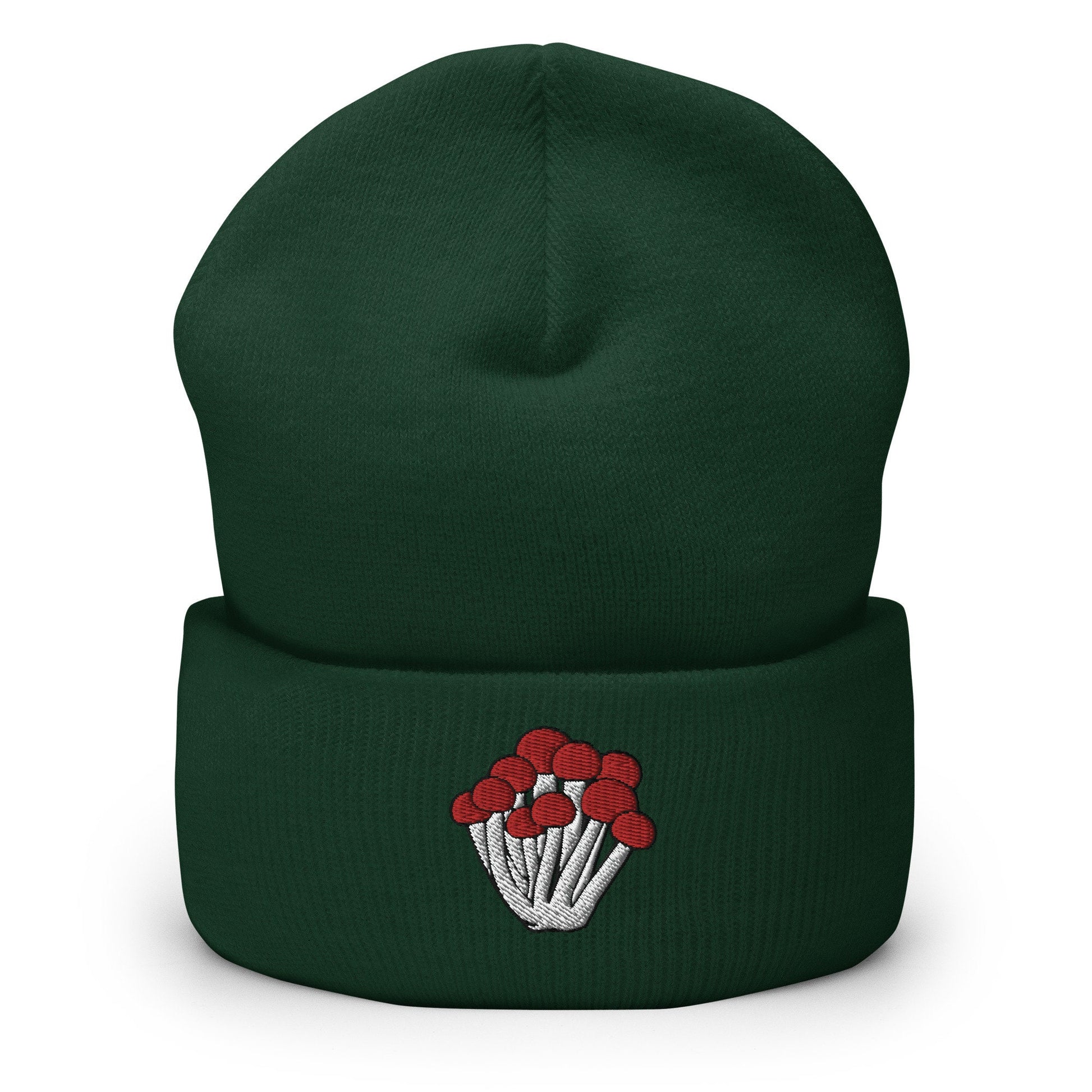 Bunch of Fungi, Fungus, Mushrooms Embroidered Beanie, Handmade Cuffed Knit Unisex Slouchy Adult Winter Hat Cap Gift