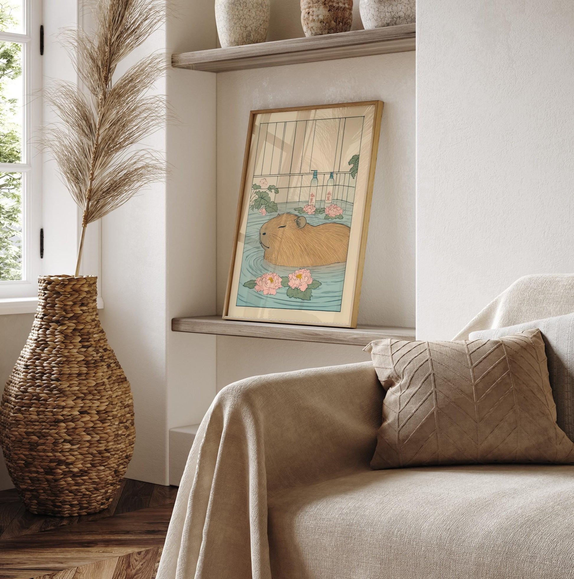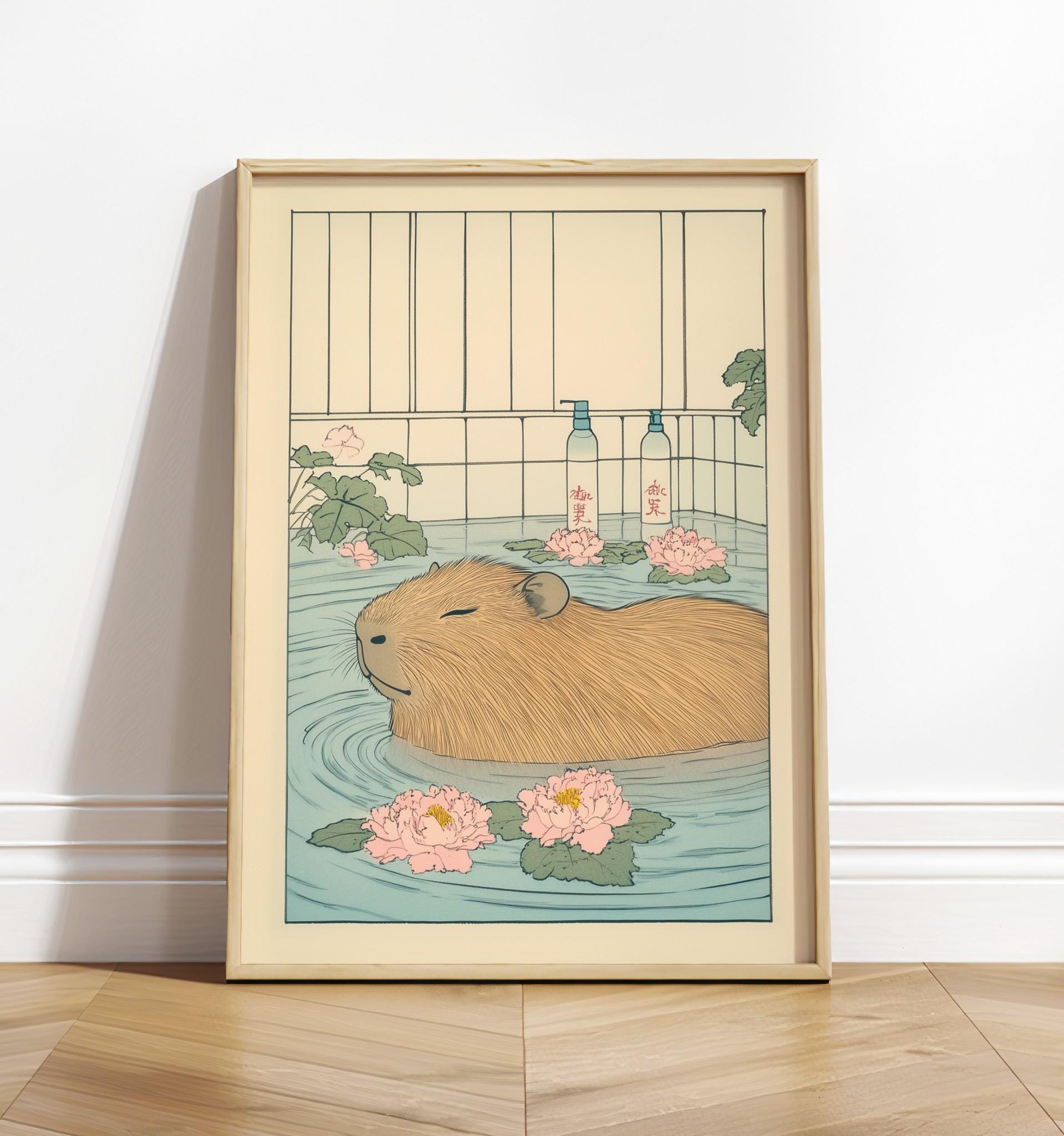 Capybara Bath Print: Japanese Ukiyo-e Animal Art